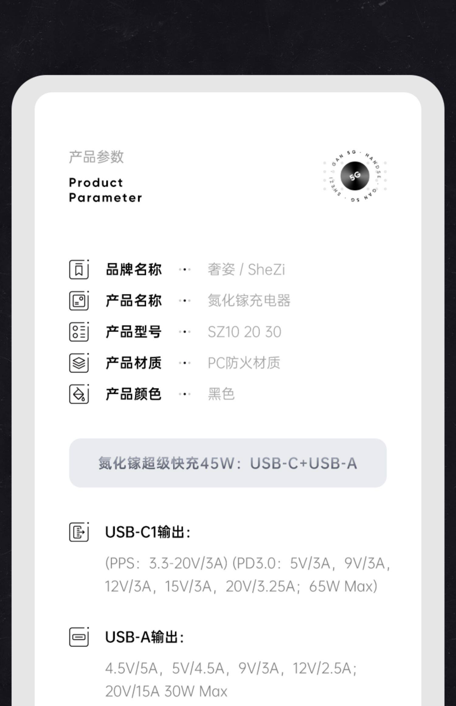 Shezi подходит для зарядного устройства Apple 13 PD, головки для быстрой зарядки, комплекта из нитрида галлия 45 Вт, адаптера для планшета iPhone12