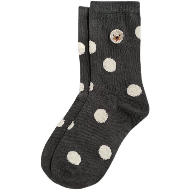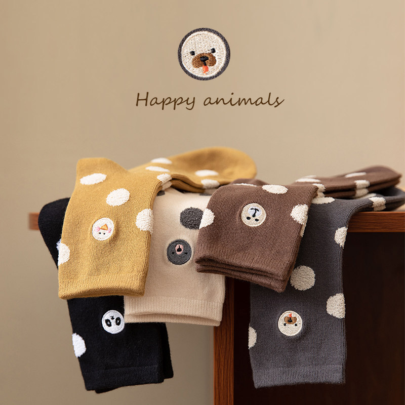 Хлопковые милые весенние зимние носки, с вышивкой, средней длины