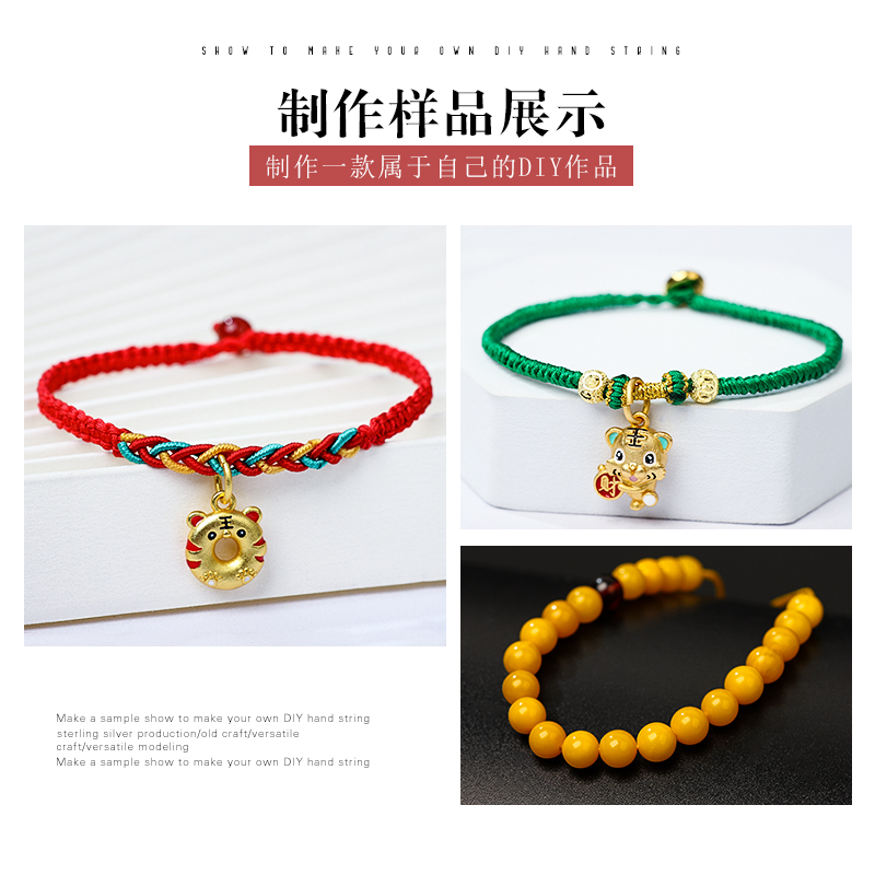Плетеный красный браслет ручной работы, кольцо, бусины, DIY