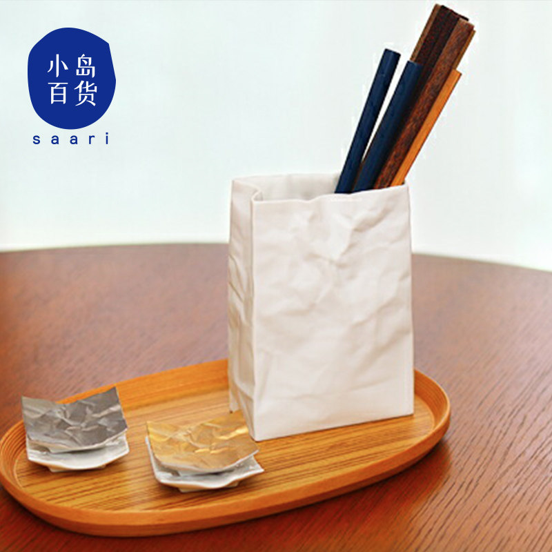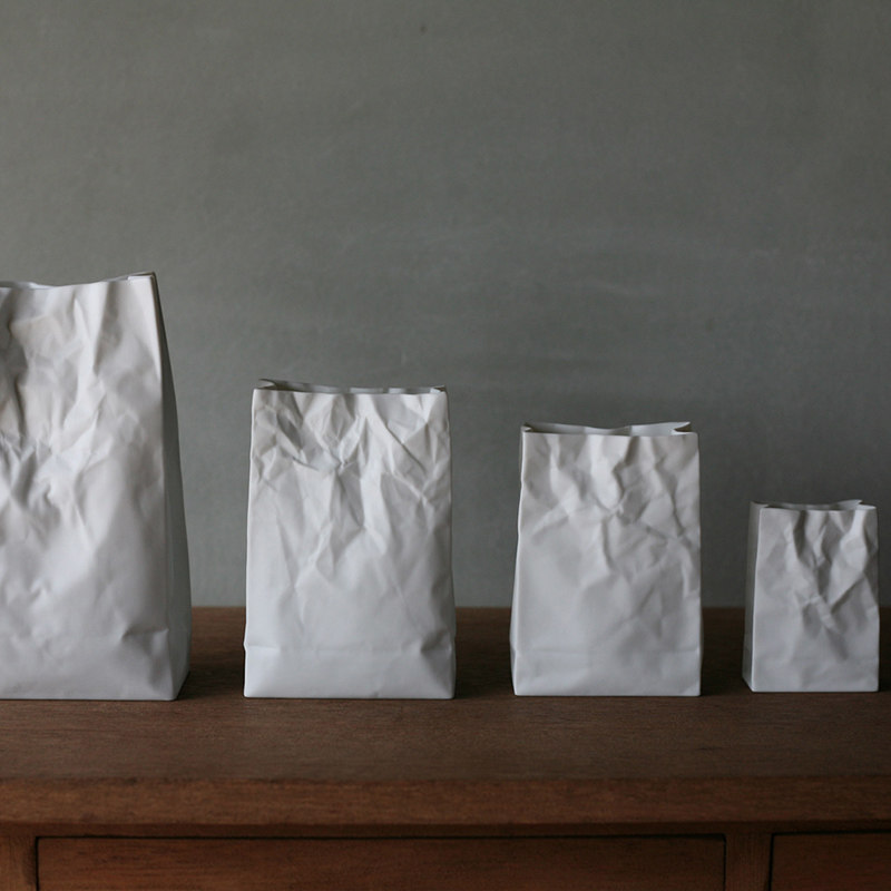 Японская керамическая японская складчатая бумажная ваза-мешок Komatsu Makoto, простая цветочная композиция, украшение