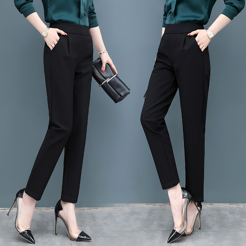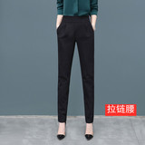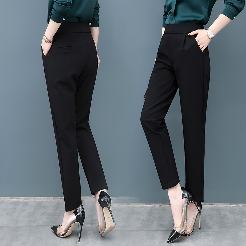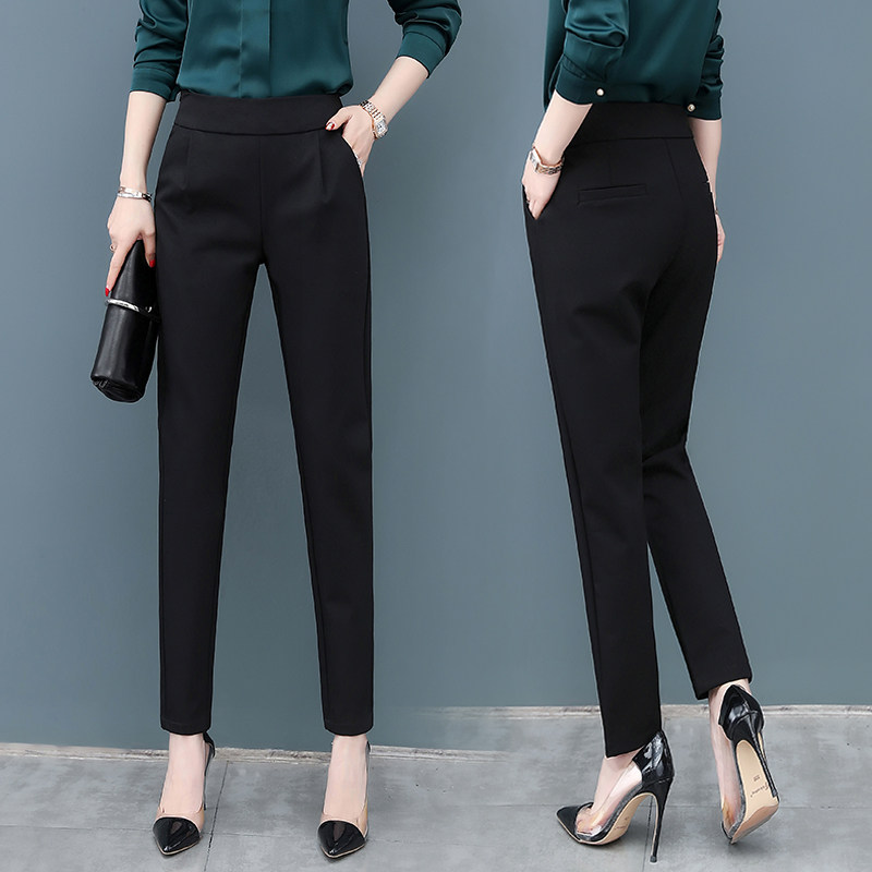 Черные осенние штаны, приталенные повседневные брюки, высокая талия