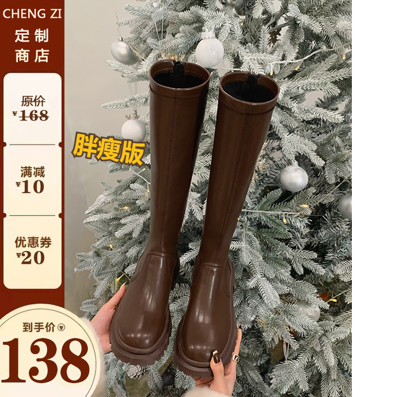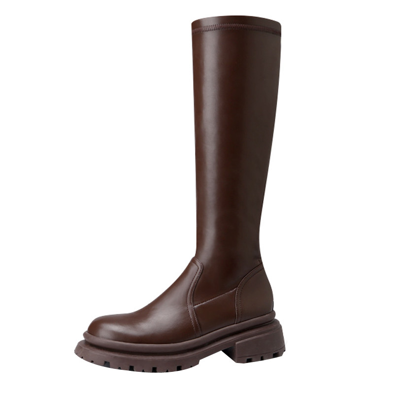 Коричневые высокие сапоги на платформе, ботинки, подходит для подростков