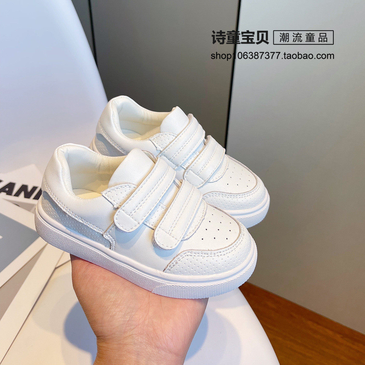 Детская белая обувь, повседневная обувь на липучке подходит для мужчин и женщин, белая спортивная обувь, из натуральной кожи, мягкая подошва, для бега