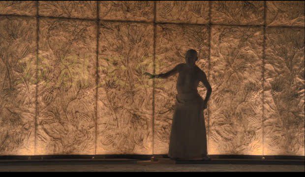 Название пьесы представляет собой иероглиф, обозначающий все, что касается циркуляции и вращения воды, а также используется для обозначения движения и циркуляции в определенной последовательности; смена времени, смена времен года, изменения окружающей среды и т. д. Стены, используемые на сцене, представляют собой деформированные окаменелости палеозойских криноидей.