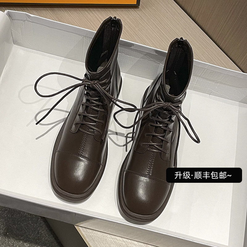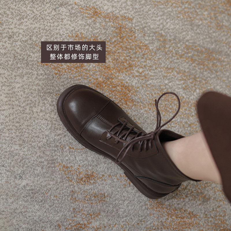 Martens, коричневые утепленные короткие сапоги в английском стиле, из натуральной кожи, подходит для подростков, коллекция 2023, в британском стиле