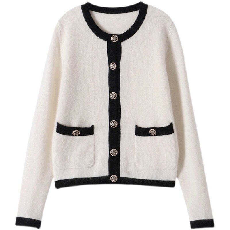 Демисезонный кашемировый ретро трикотажный свитер, куртка, в стиле Шанель, французский стиль