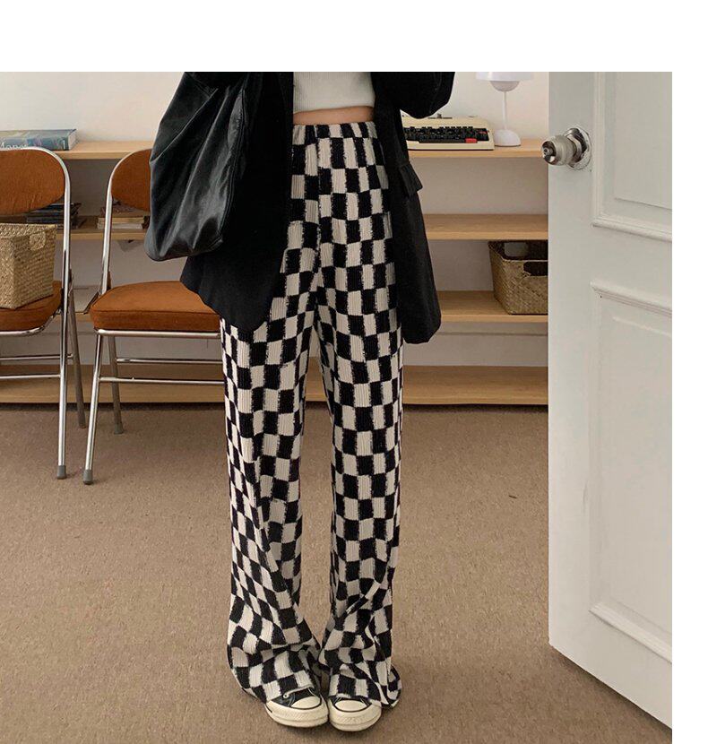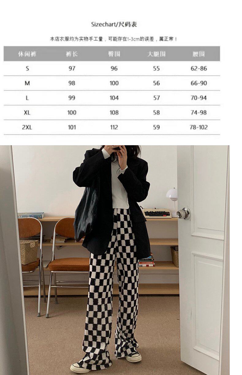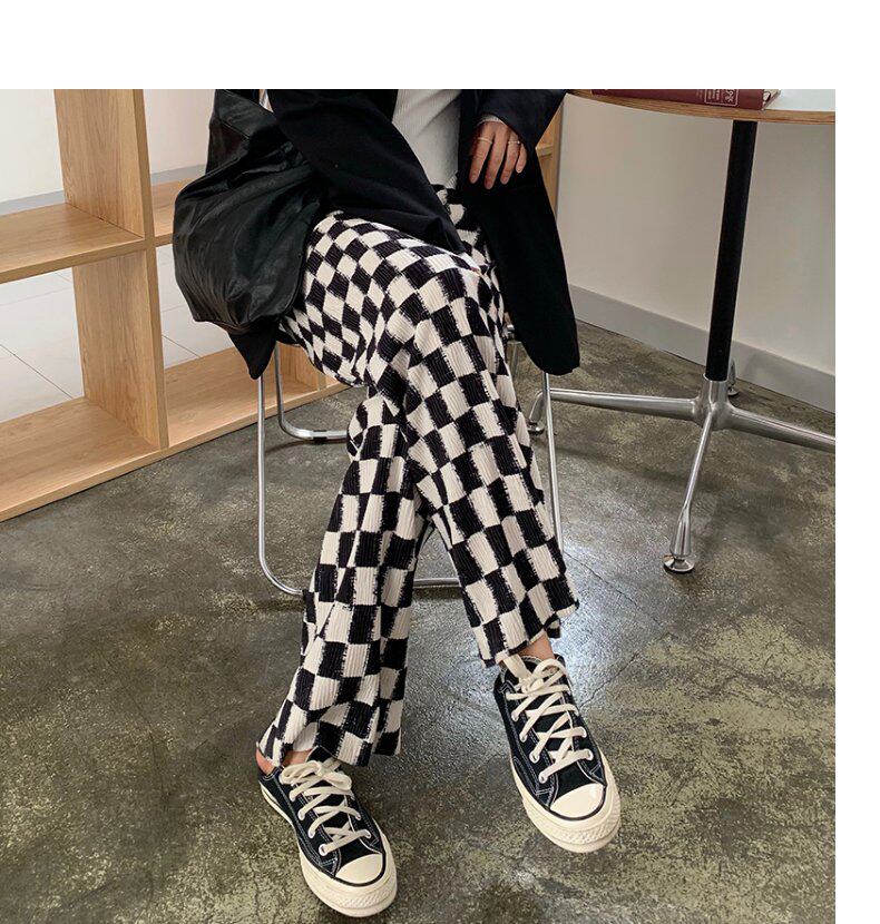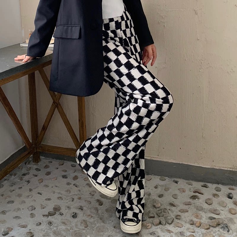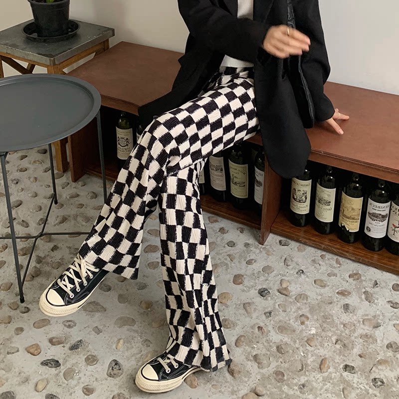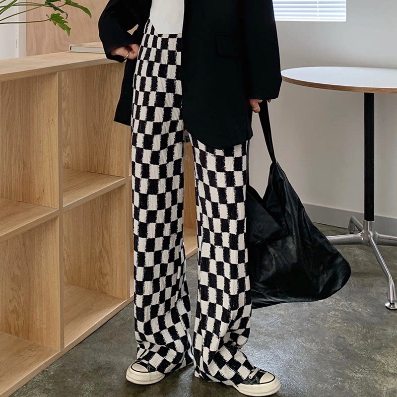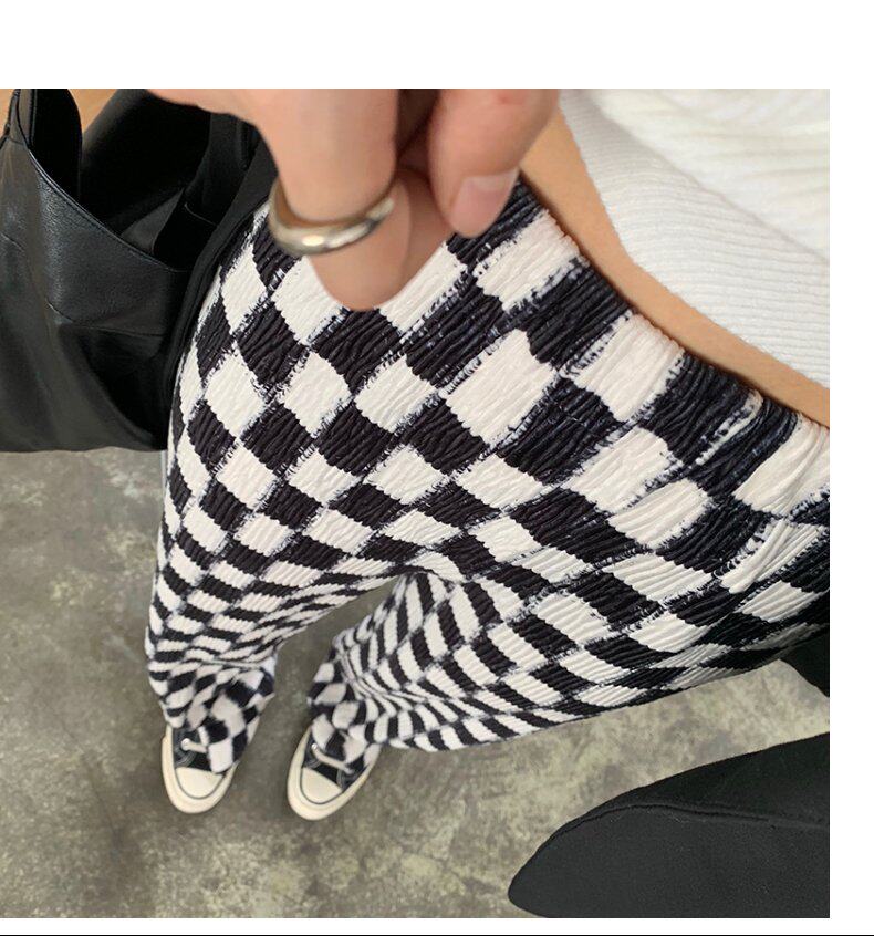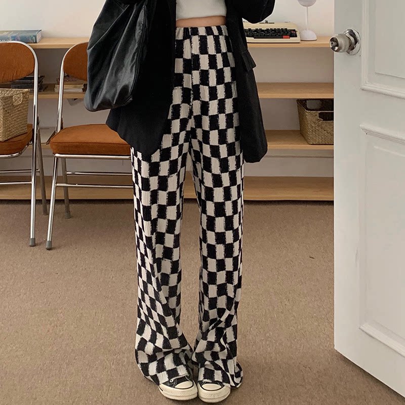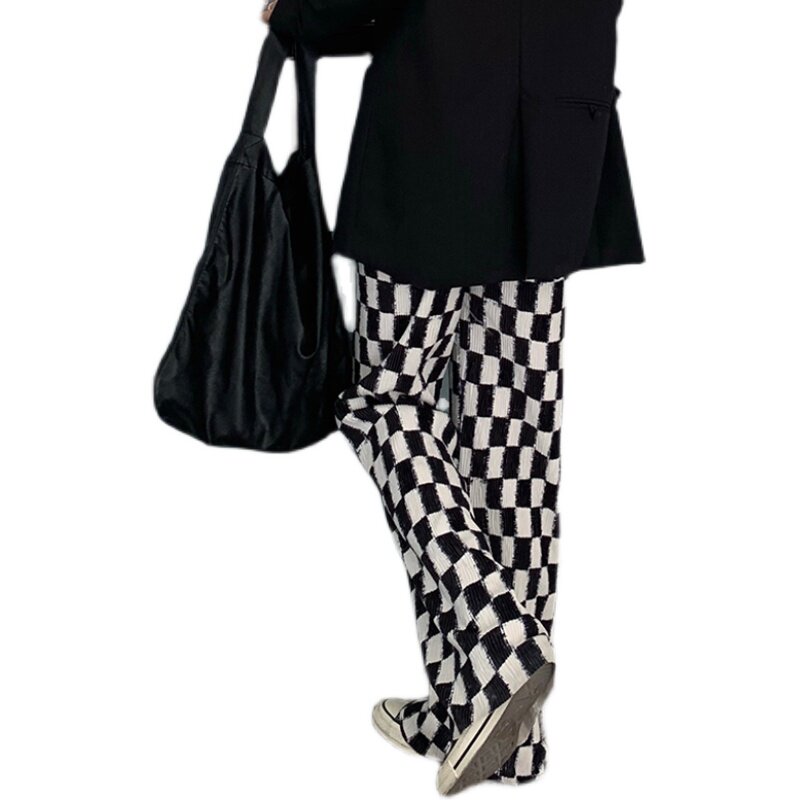 Осенние демисезонные штаны, шахматы для отдыха, высокая талия, большой размер, оверсайз