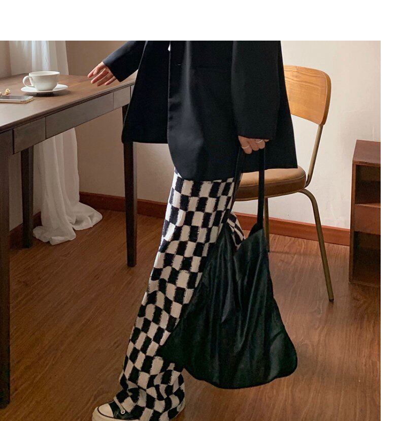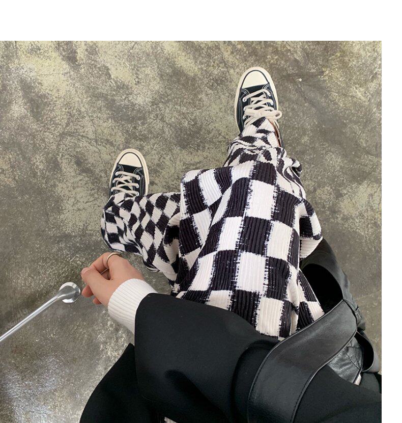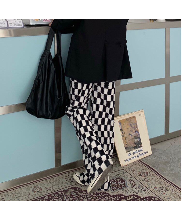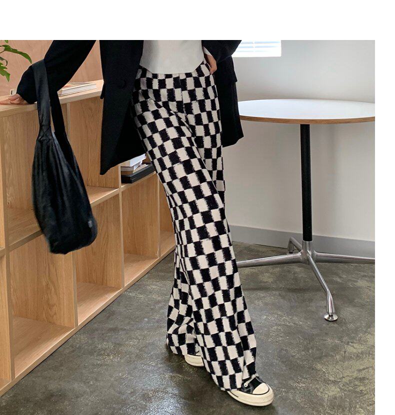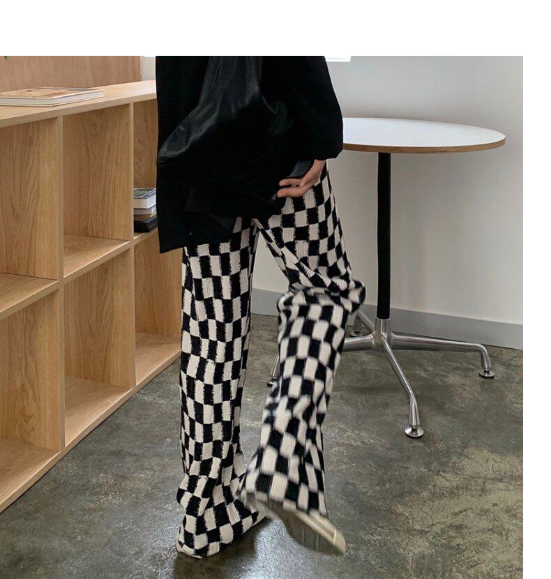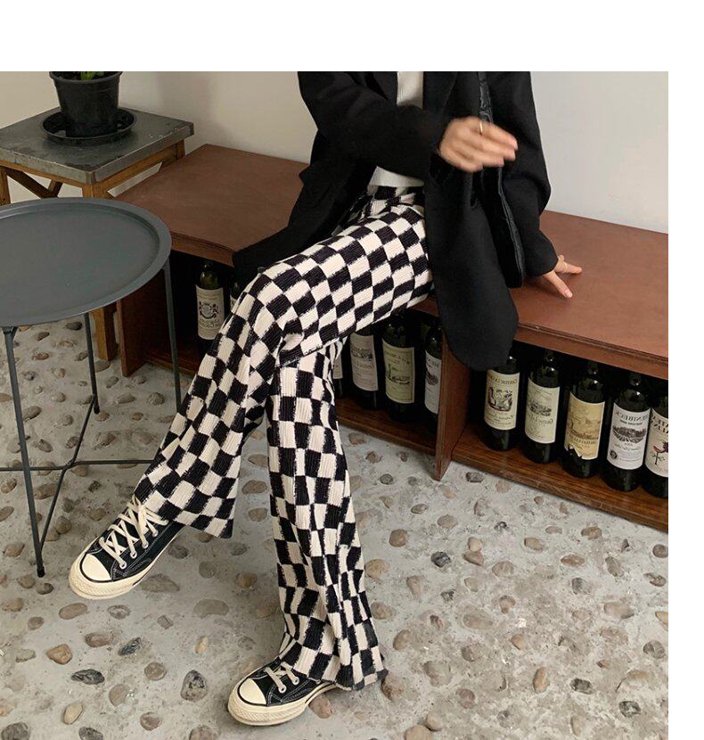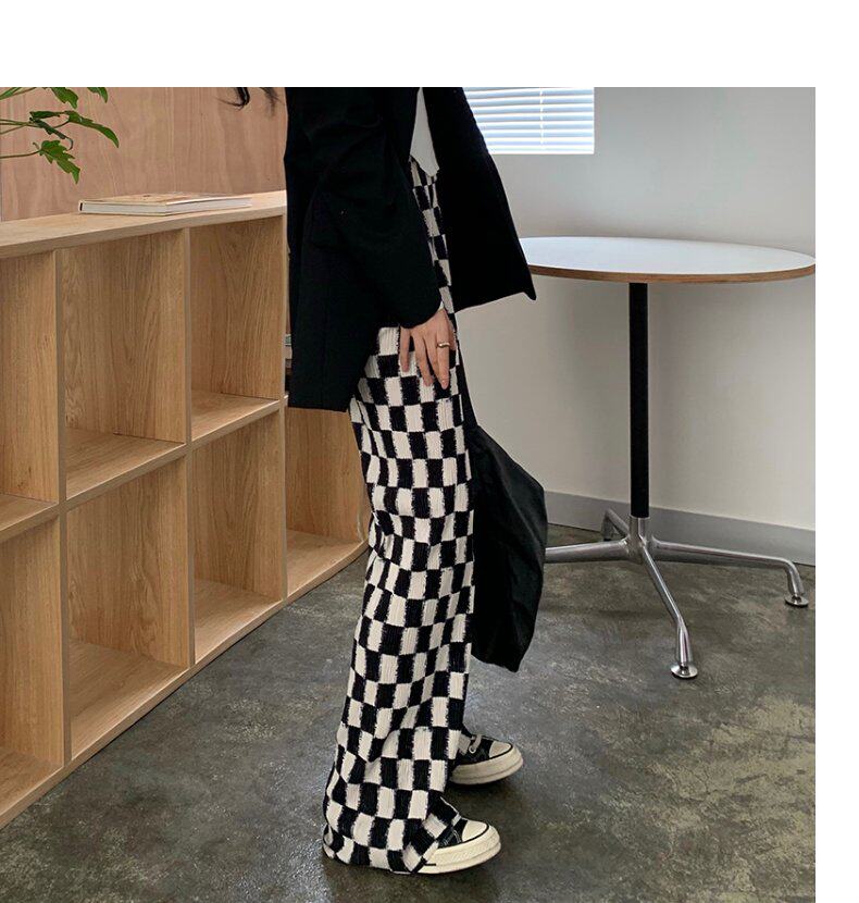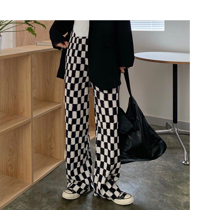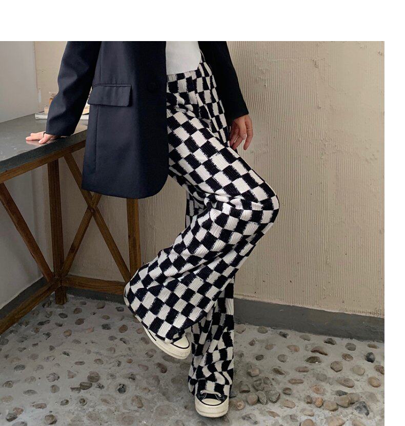 Осенние демисезонные штаны, шахматы для отдыха, высокая талия, большой размер, оверсайз