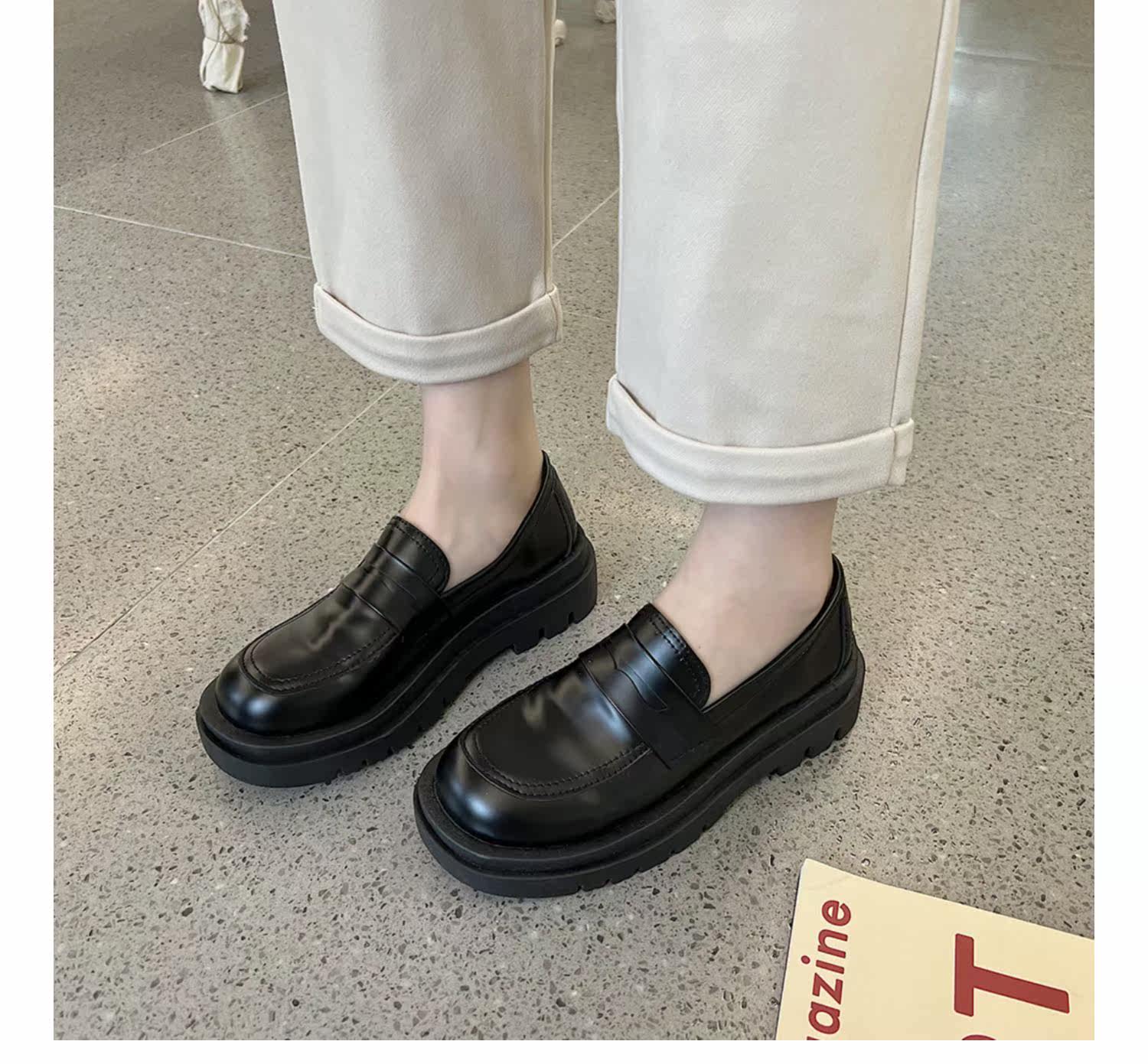 Весенняя обувь в английском стиле для кожаной обуви на платформе, черные трендовые лоферы, китайский стиль