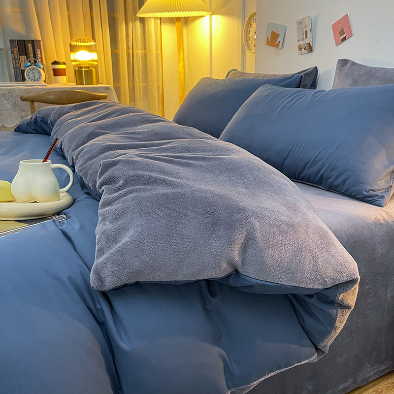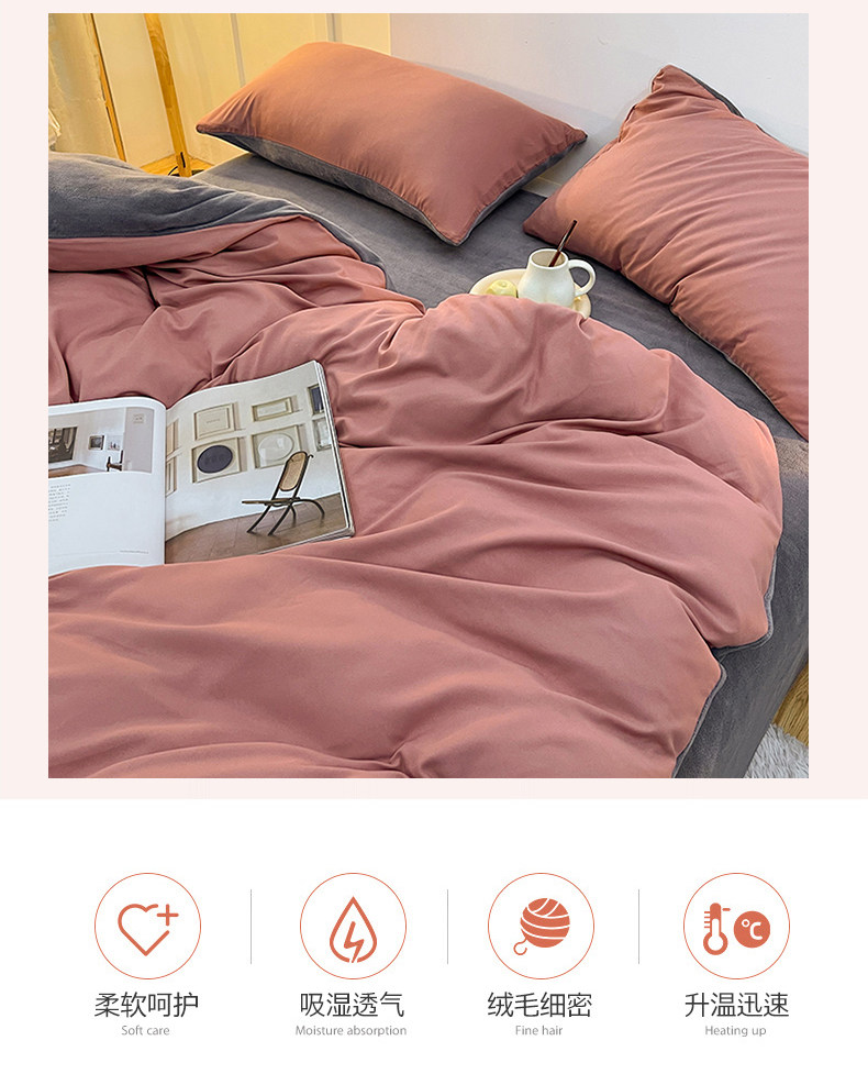 Коралловый фланелевый комплект, флисовый пододеяльник, зимняя простыня, 4 предмета, увеличенная толщина, 3 предмета