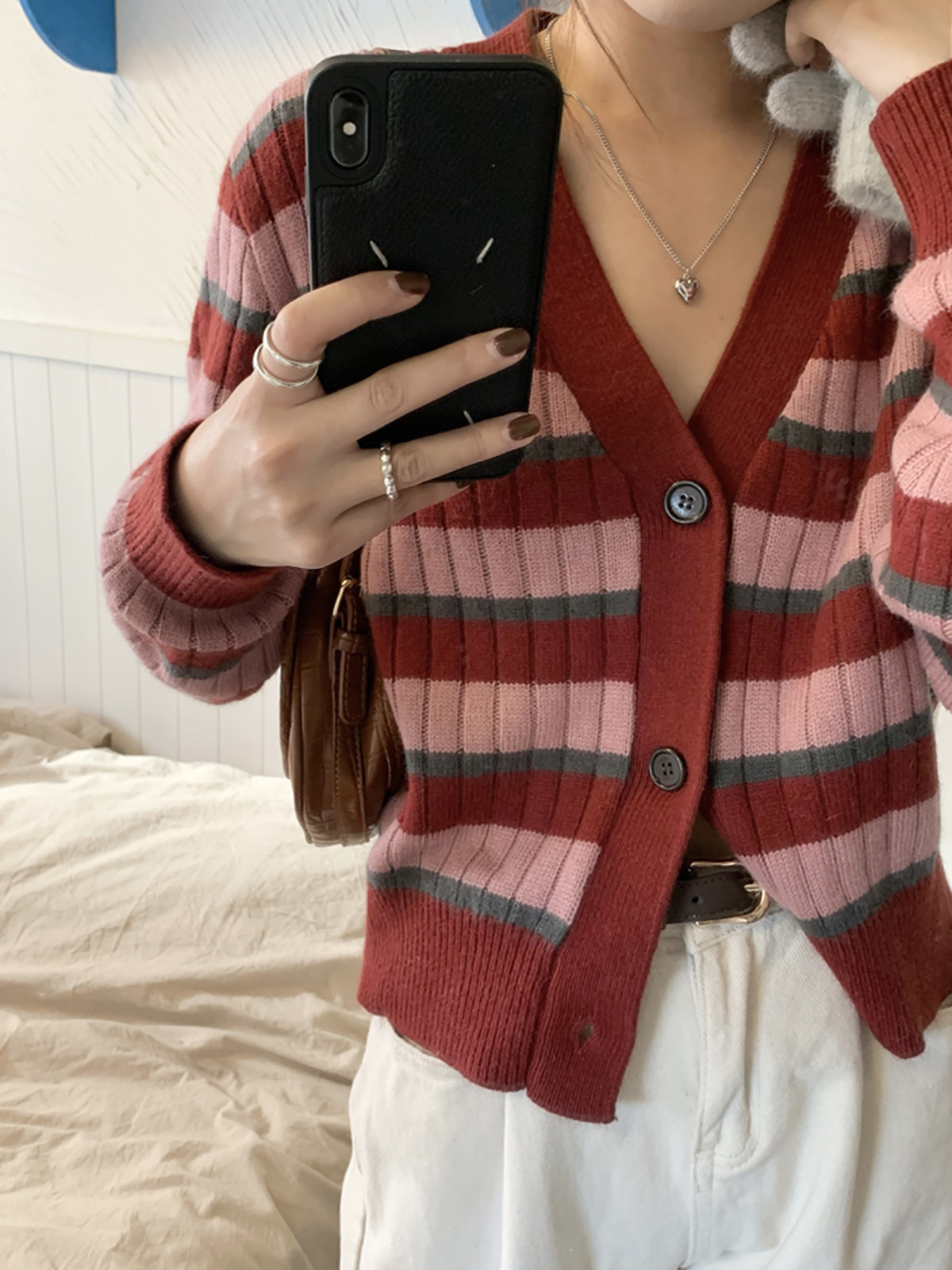 Ретро трикотажный кардиган, демисезонная куртка, короткий свитер, V-образный вырез