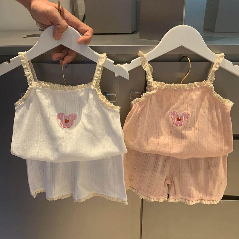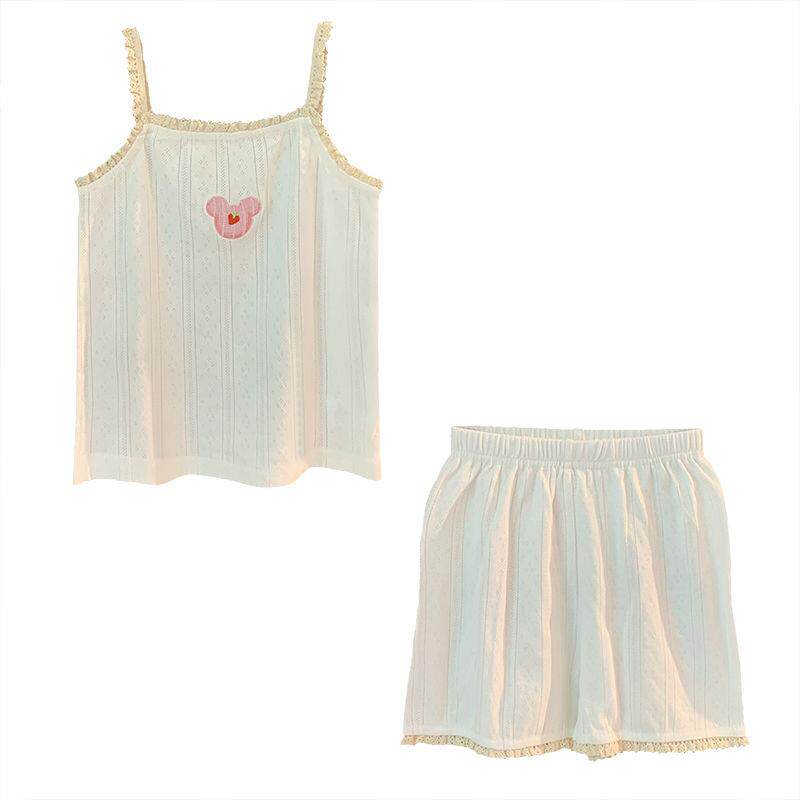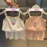 Пижама, детский тонкий мягкий комплект, милая комфортная майка, шорты, эффект подтяжки