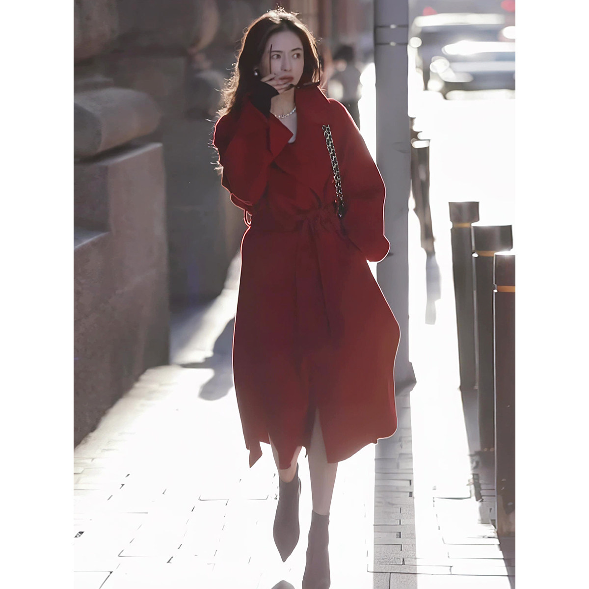Костюм, шерстяное пальто, длинная красная кашемировая зимняя куртка, премиум класс