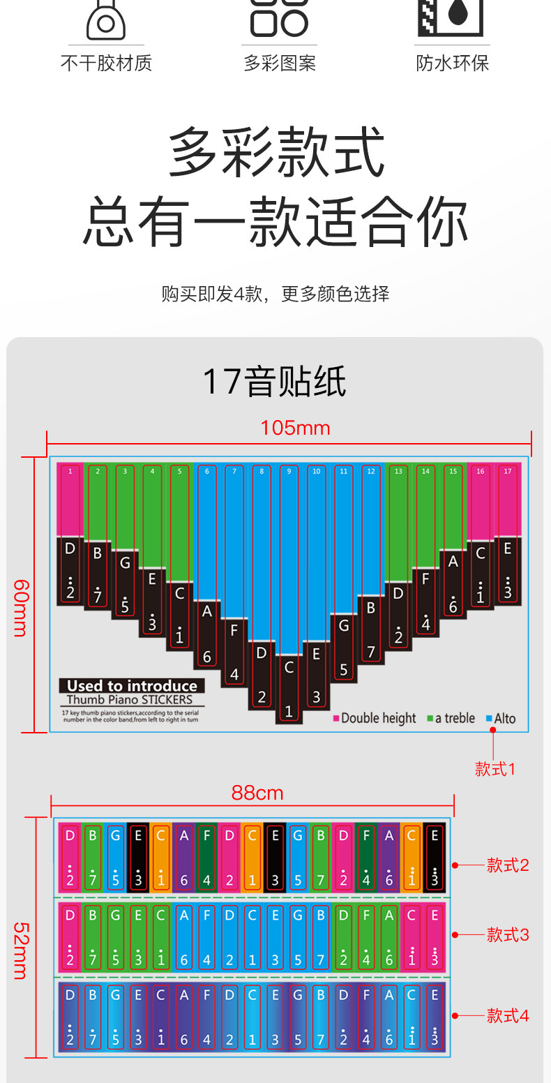 Начальная наклейка на пианино на начало большого пальца Callein Piano 17 Tone, Five -Finger Piano Soundtracks, Kalimba Universal