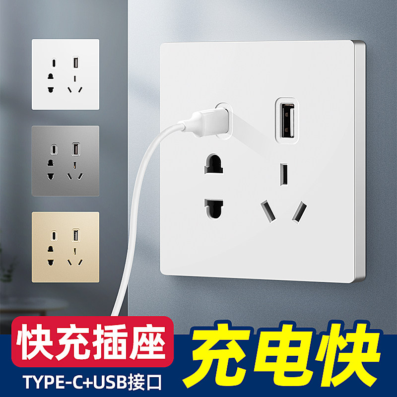 Тип 86 Пятилетний USB-выключатель Type-C Smart Fast Grading Plant-Plugen Pangin Dark Установка 5-луночная зарядка мобильного телефона
