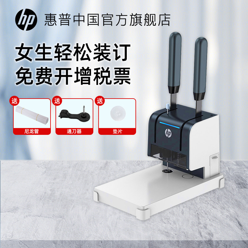 [HP/惠普财务凭证装订机办公打孔机会计记账票据全自动热熔铆管胶管装线机文件档案手动胶装机电动打洞机]