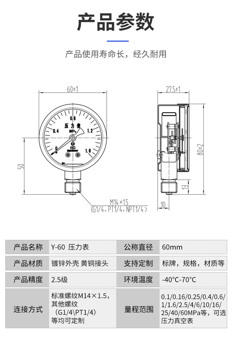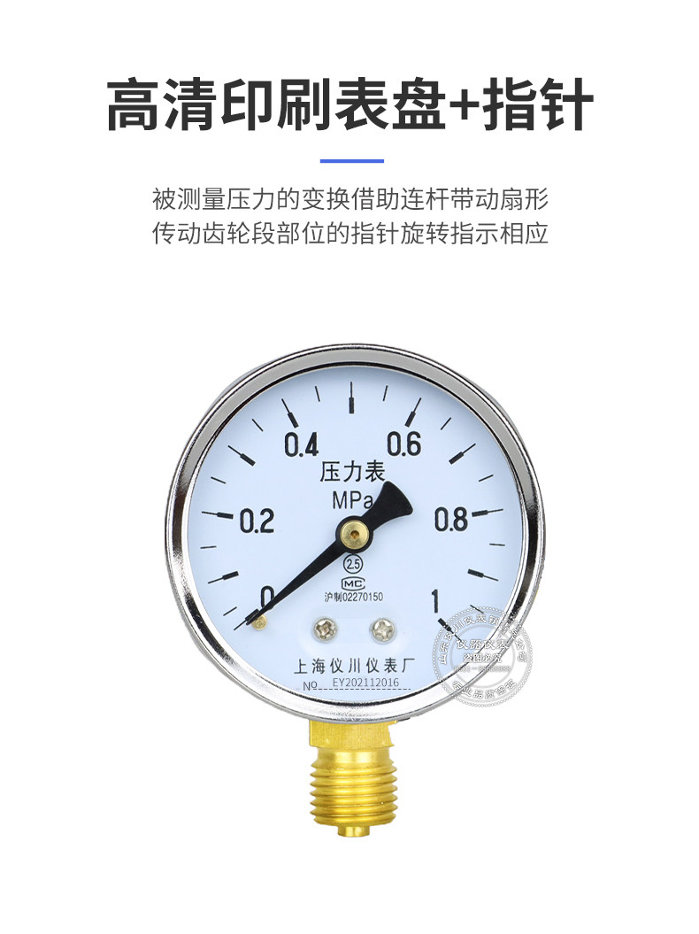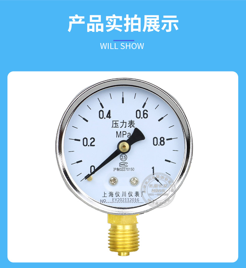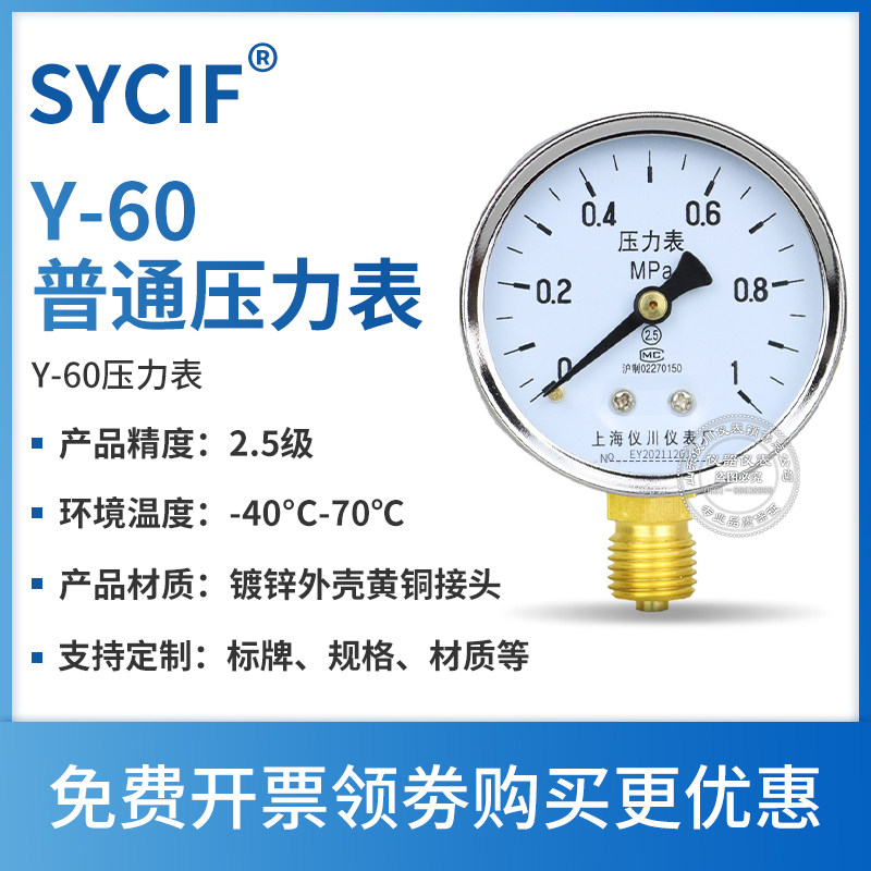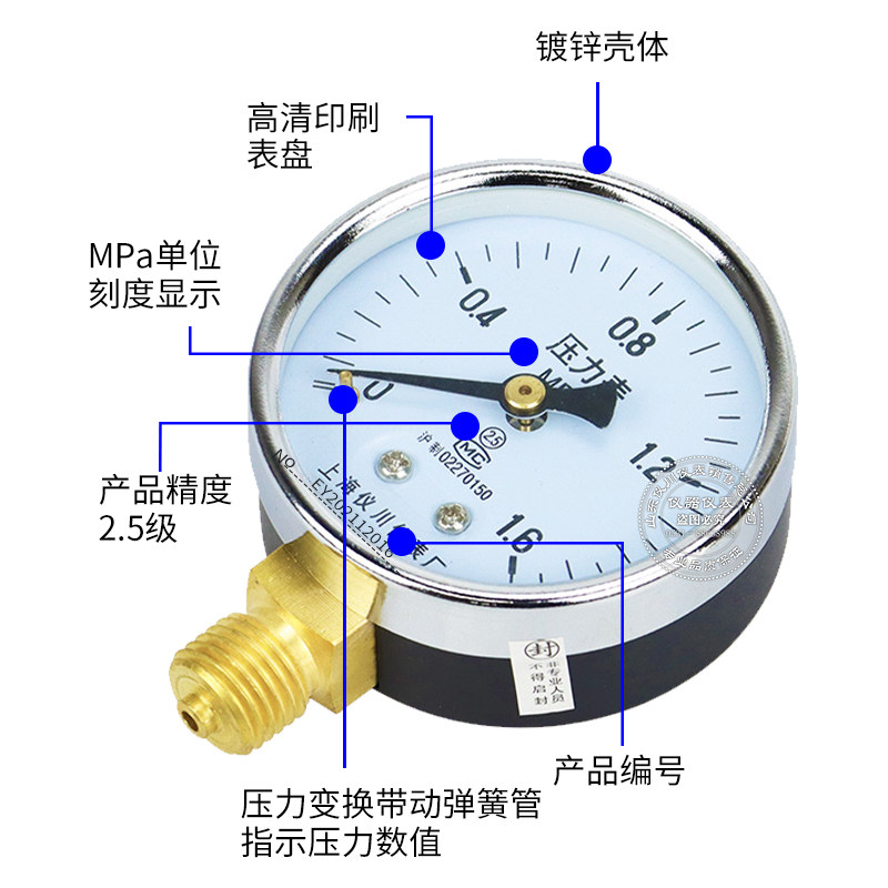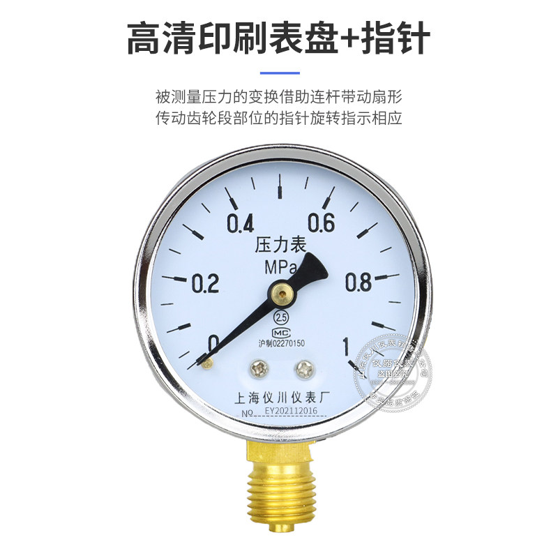 Шанхайский Yichuan прибор Y60 Радиальное давление давления давления давления давления в давление в вакууме Таблица давления 0-1,6 МПа