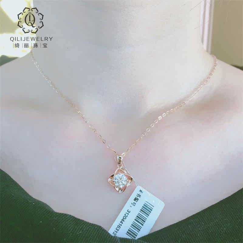 Золотая модная инкрустация камня, подвеска, ожерелье, цепочка до ключиц, Россия, золото 14 карат, розовое золото