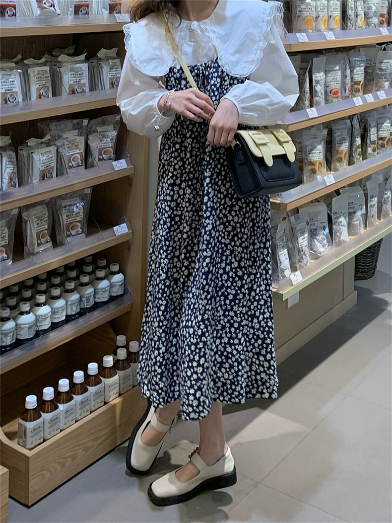 Осеннее платье, комплект, французский стиль, коллекция 2022, цветочный принт