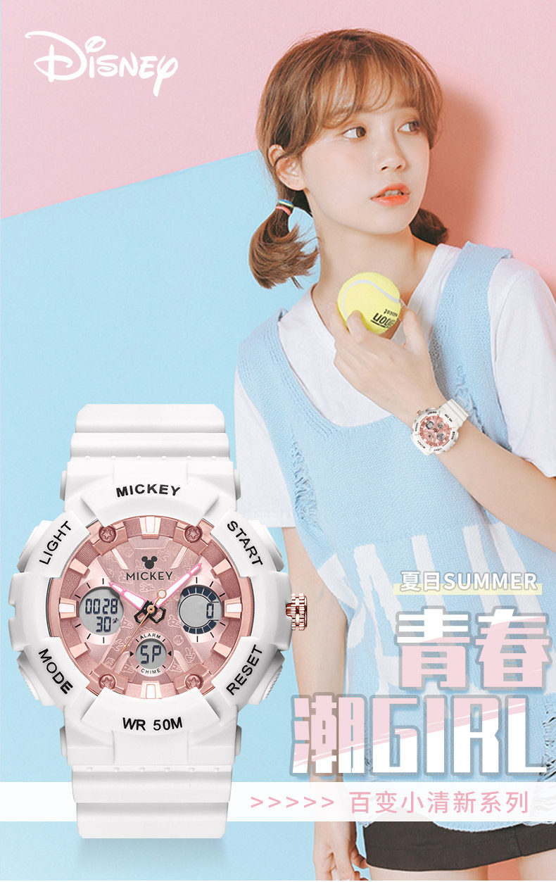 Дисней, высококачественные цифровые часы, для средней школы, женский стиль