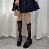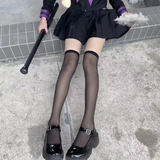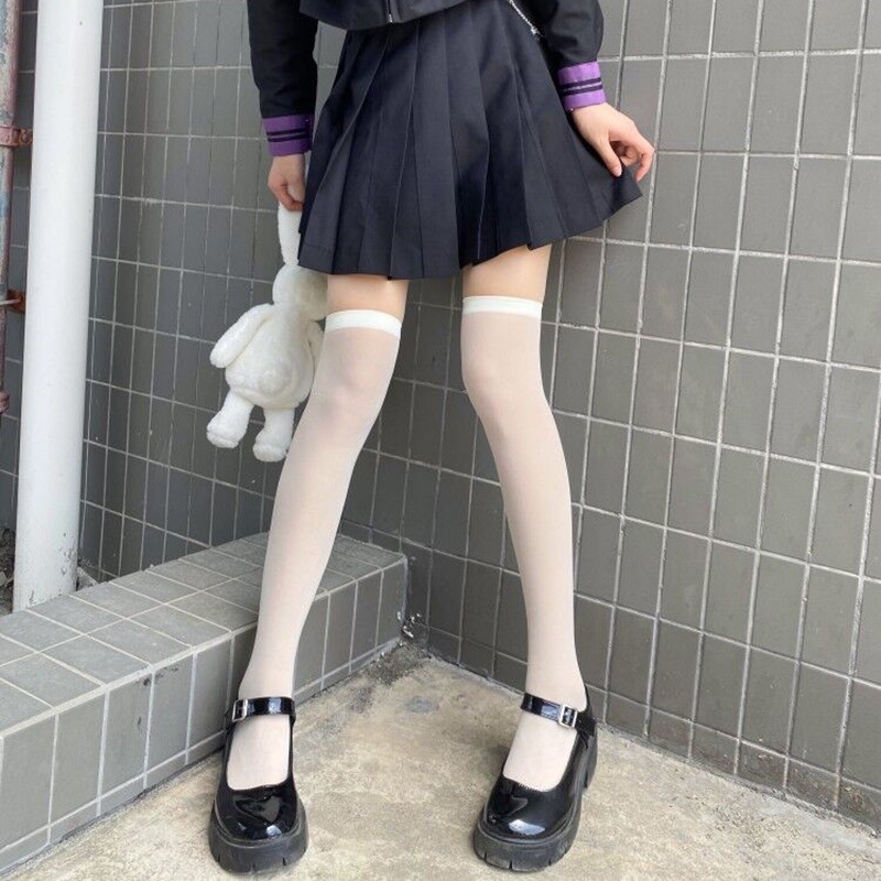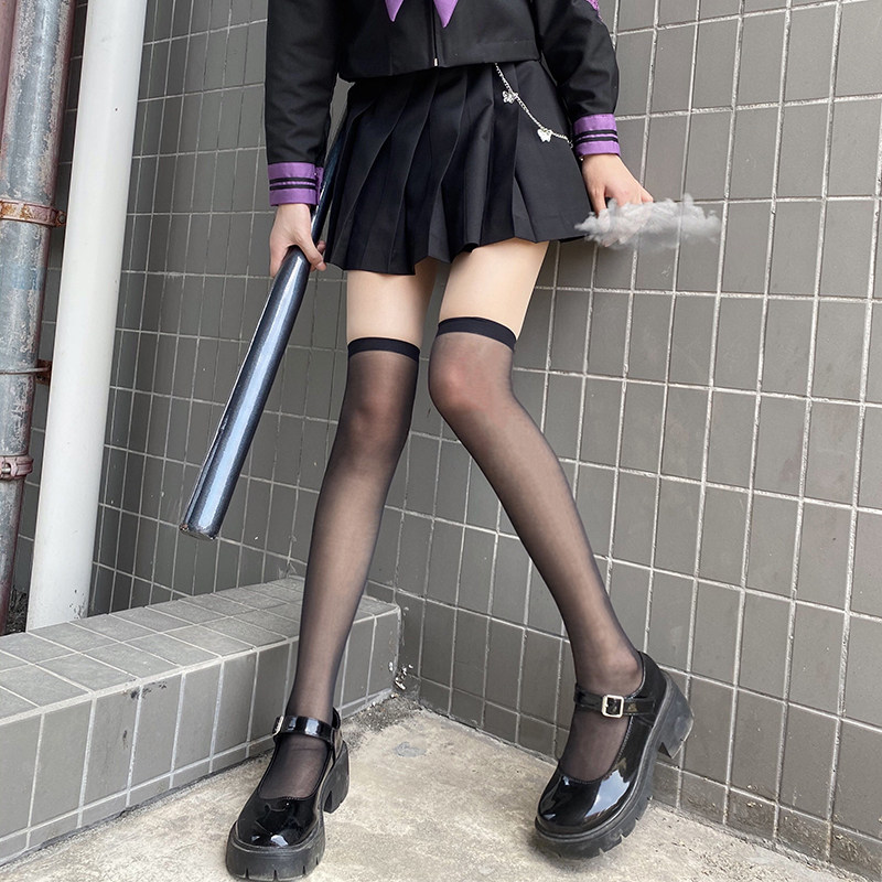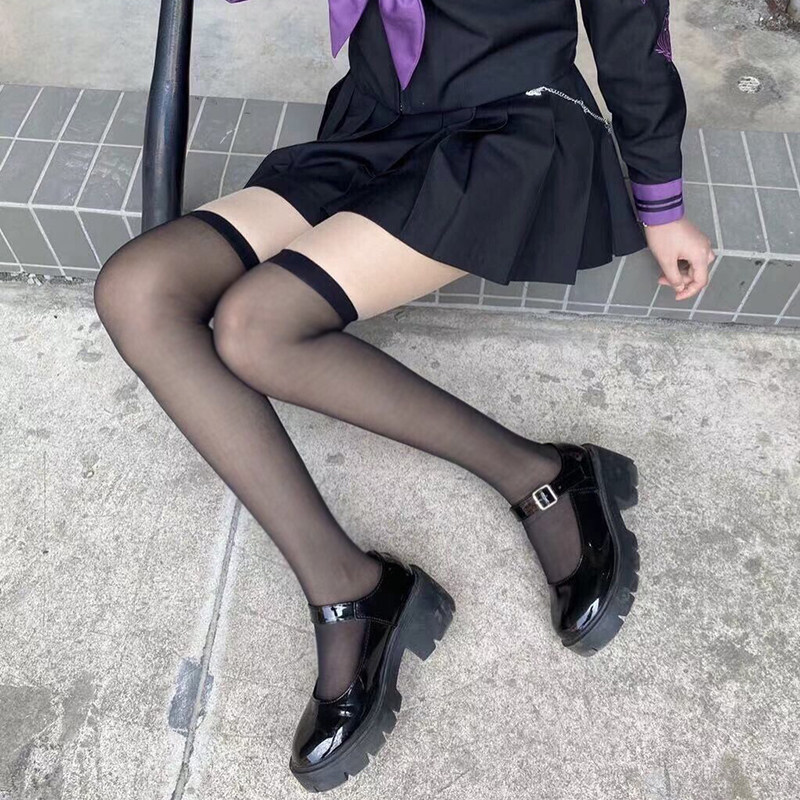 Японские милые черные весенние летние тонкие колготки, белые высокие сапоги