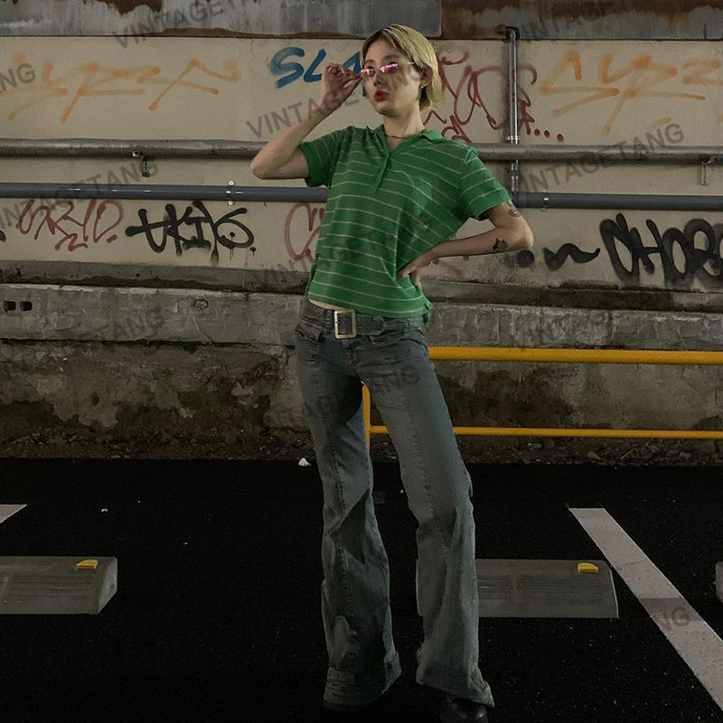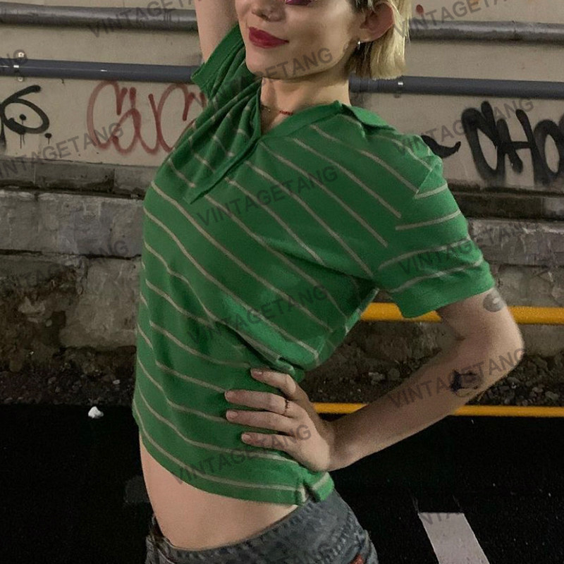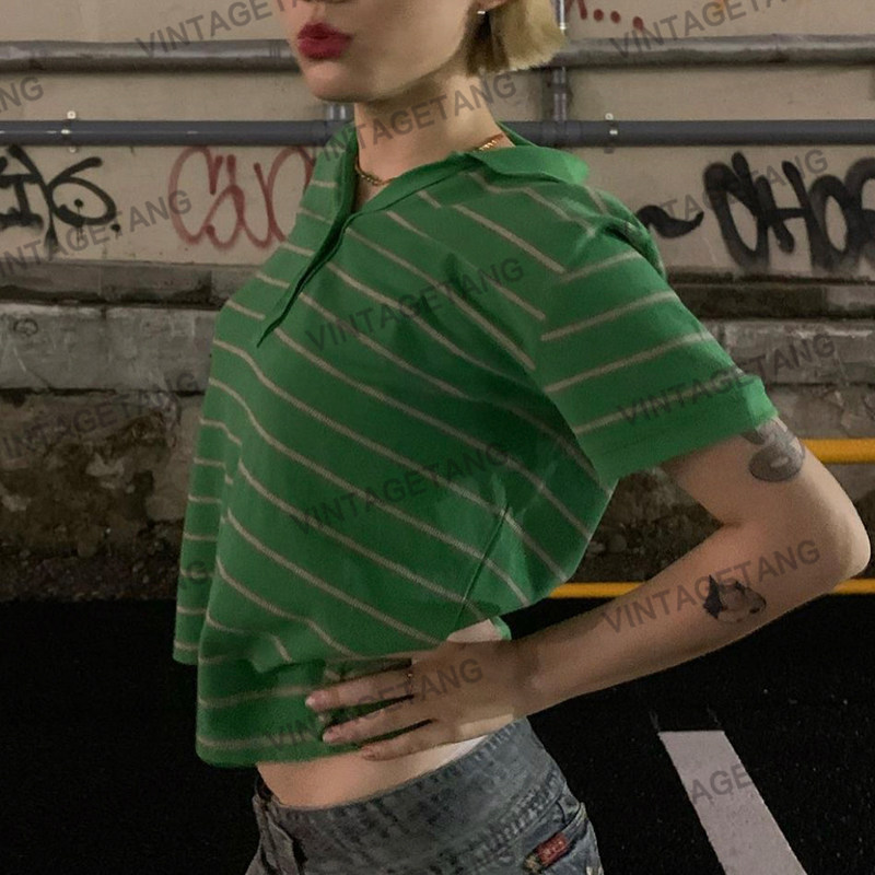 Ретро зеленая летняя футболка, в американском стиле, воротник поло