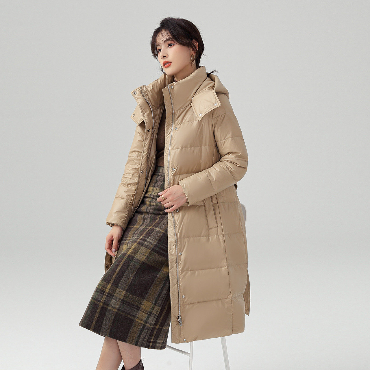 Демисезонный приталенный удерживающий тепло ветрозащитный корсет, длинный пуховик, средней длины