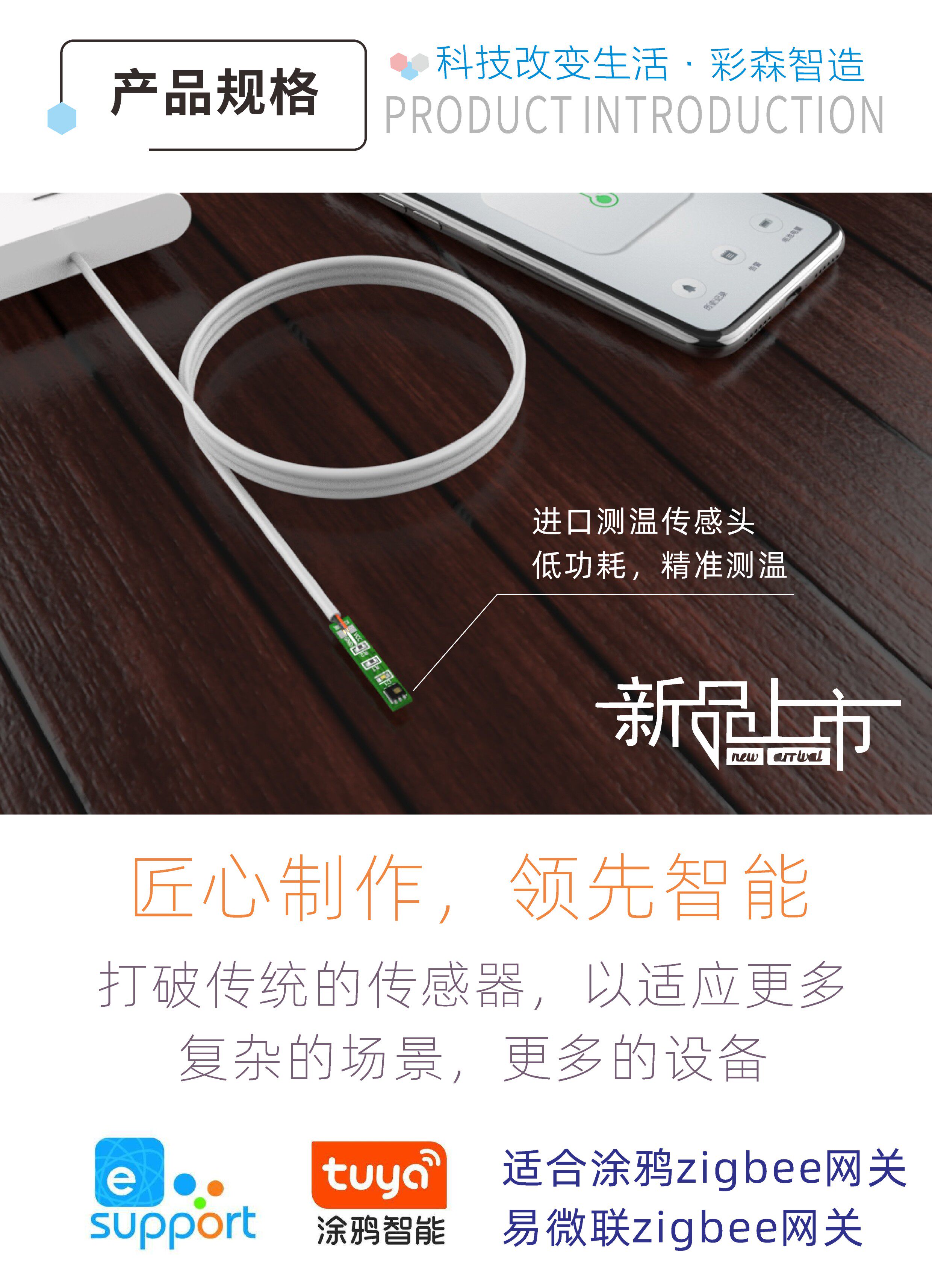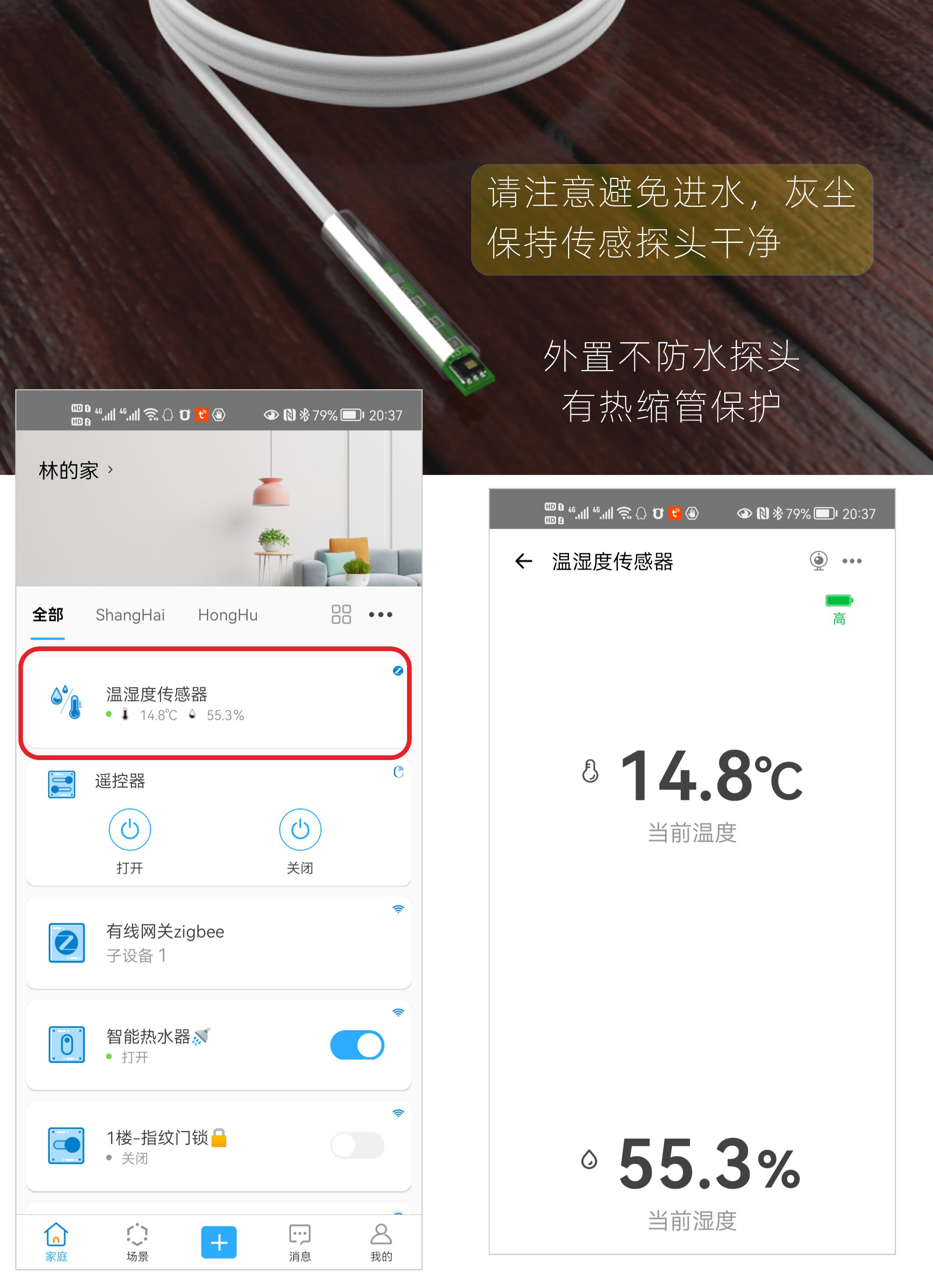 Умный термометр, гигрометр, водонепроницаемый датчик, граффити