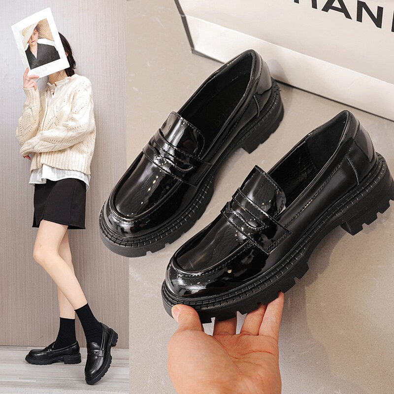 Лоферы, универсальная демисезонная черная обувь на платформе в английском стиле для кожаной обуви, коллекция 2021, из натуральной кожи, мягкая подошва