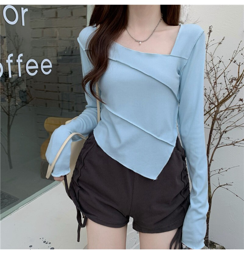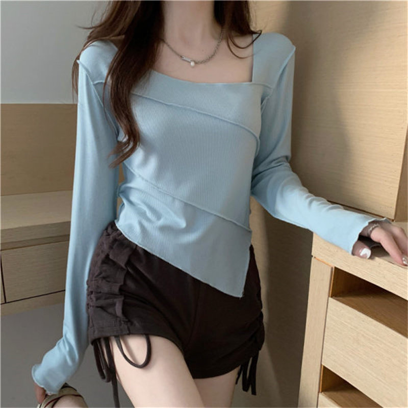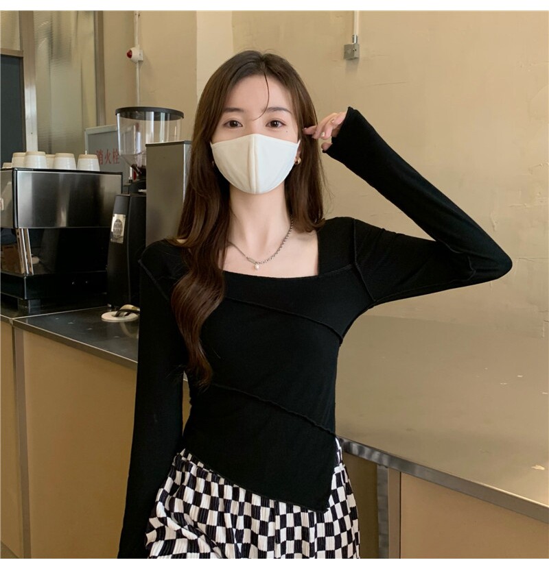 Осенний дизайнерский базовый лонгслив, квадратный вырез, в корейском стиле, коллекция 2022, тренд сезона