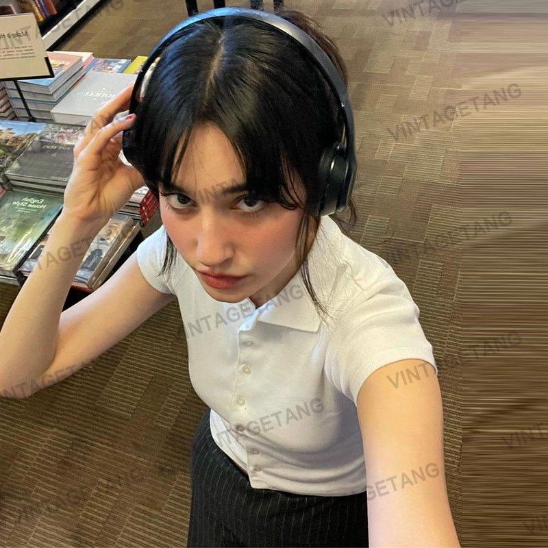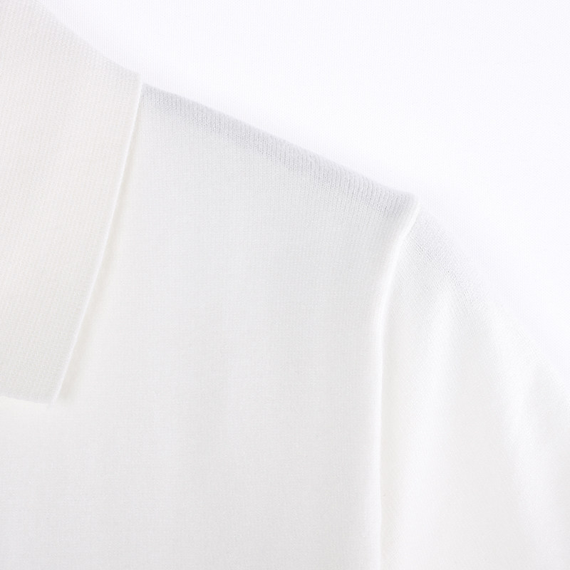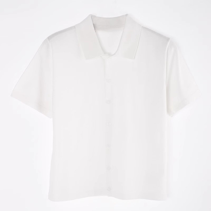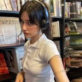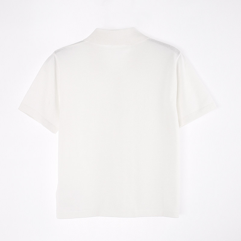 Ретро белая трикотажная футболка с коротким рукавом, воротник поло