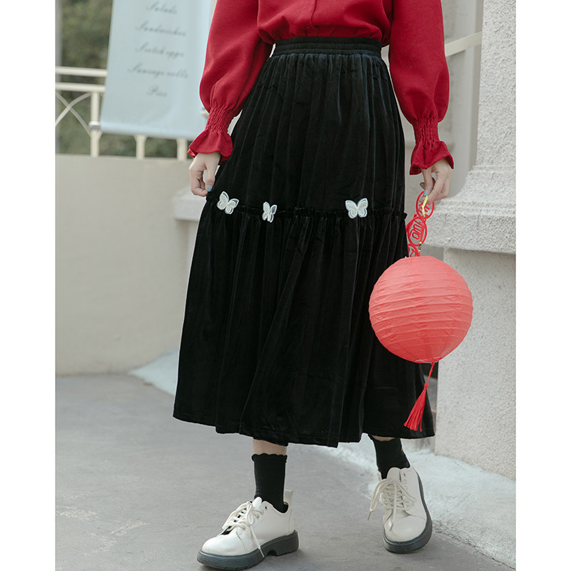 Черная осенняя модная ретро трехмерная бархатная юбка, эластичная талия, А-силуэт