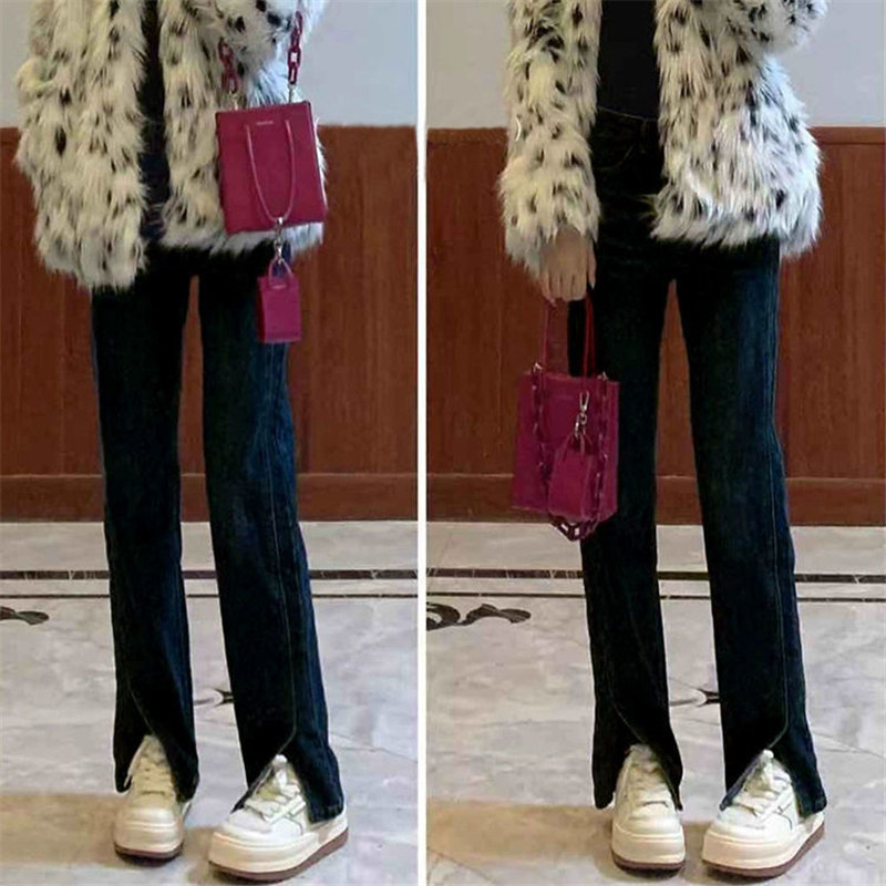 Ретро джинсовые осенние джинсы, штаны, коллекция 2023, большой размер, высокая талия, свободный прямой крой, стройный силуэт