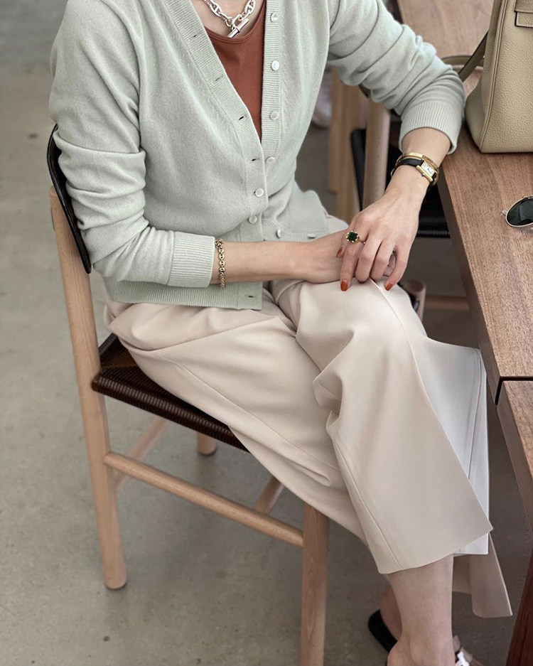 Поскольку я хотела соответствовать Янгиру, я специально выбрала довольно тонкий кардиган BBC.