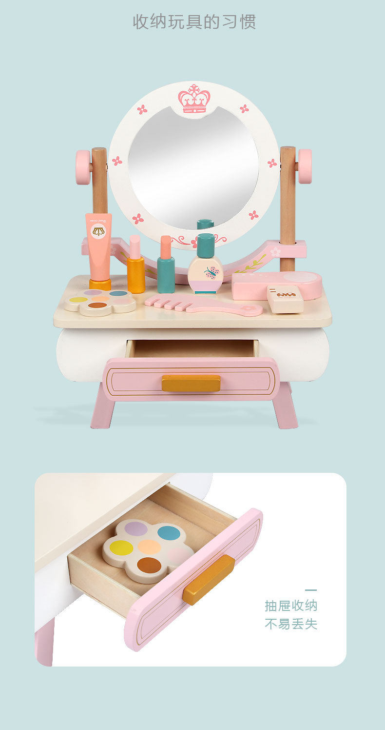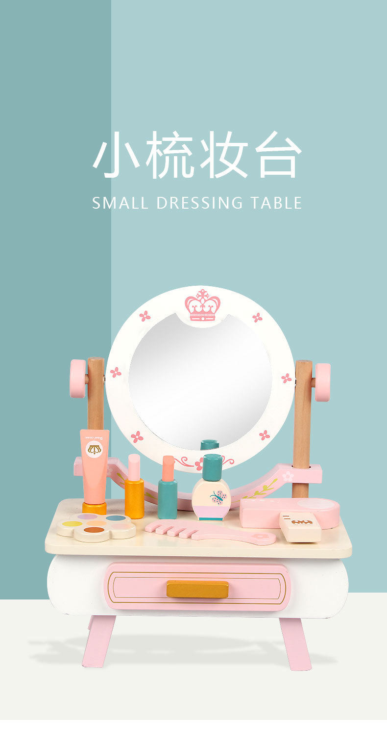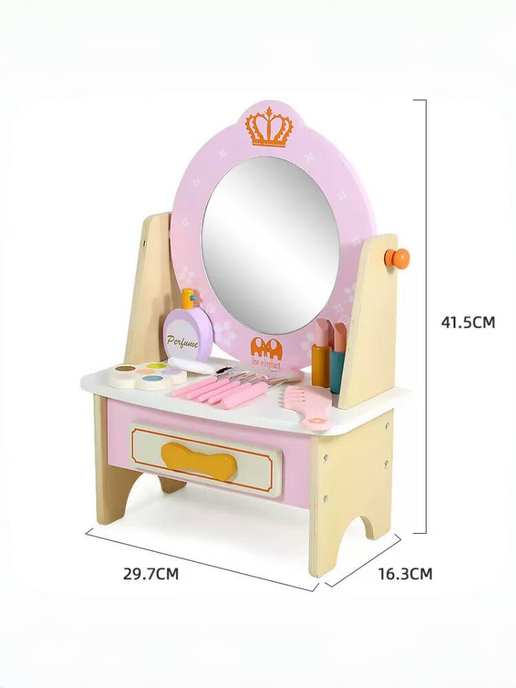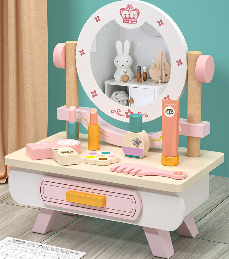 Деревянный настольный семейный туалетный столик, комплект, реалистичная игрушка, расческа, парфюм, духи