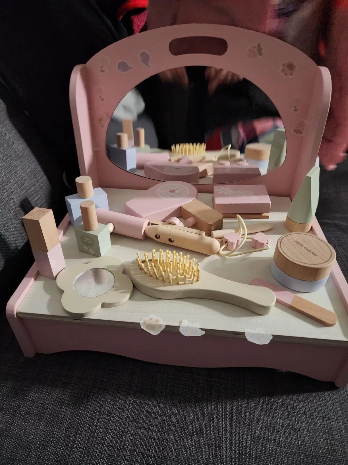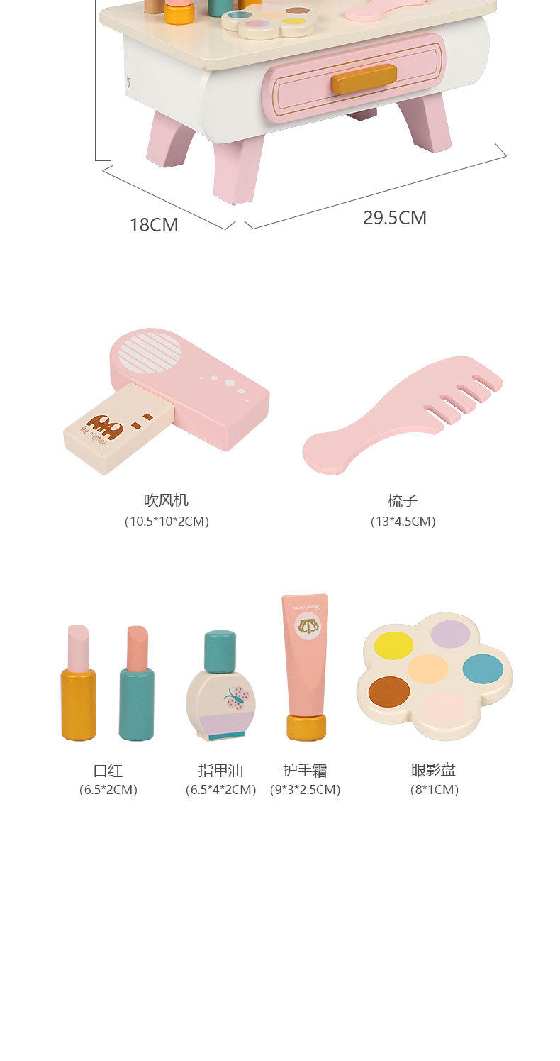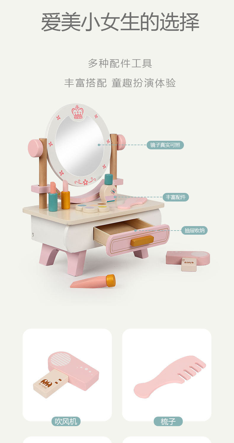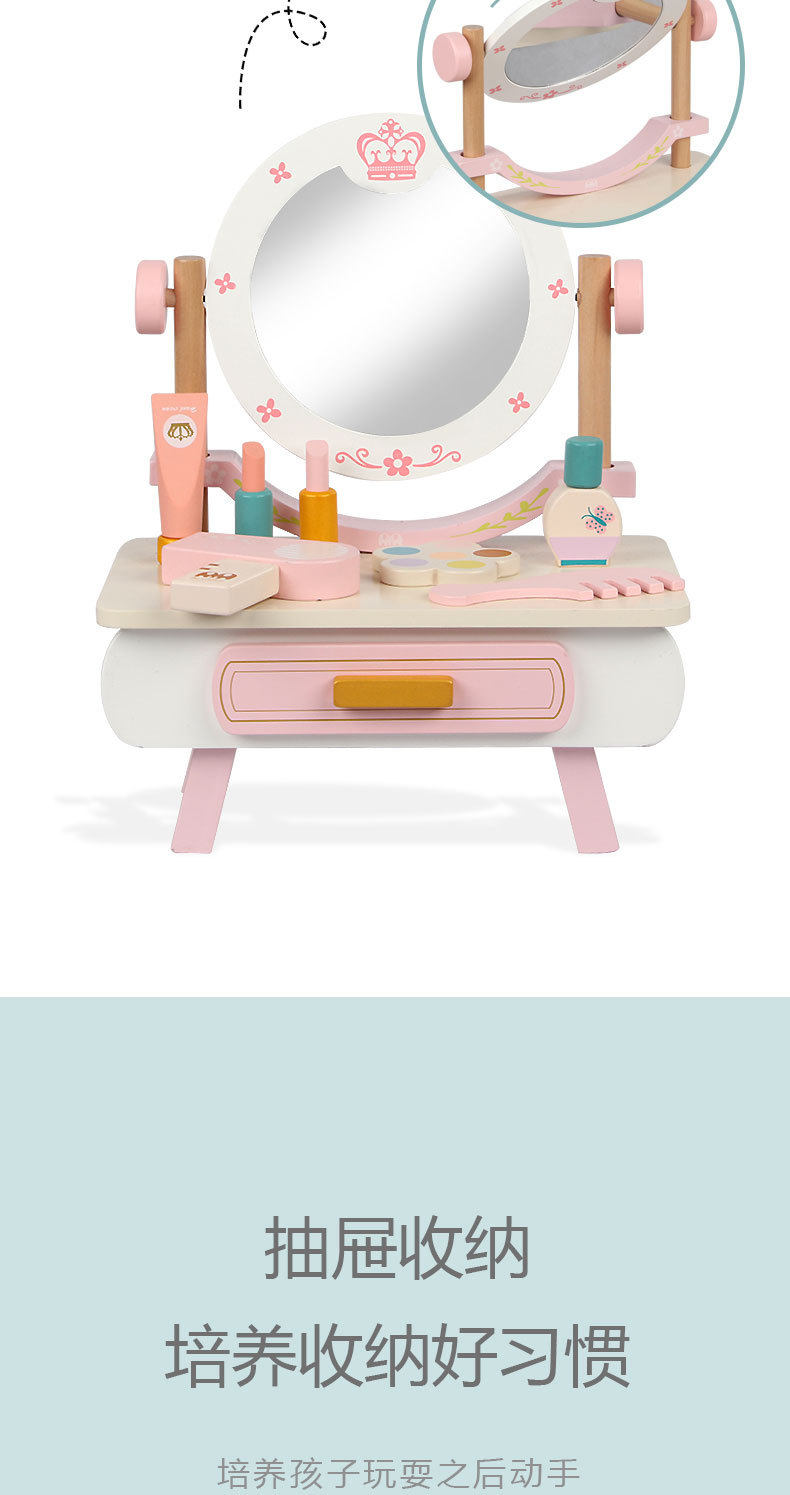 Деревянный настольный семейный туалетный столик, комплект, реалистичная игрушка, расческа, парфюм, духи