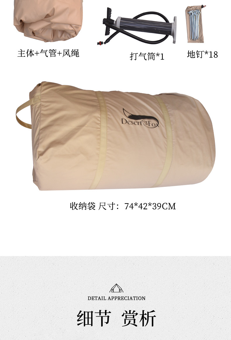 Дорожная надувная дышащая палатка для кемпинга, лиса, увеличенная толщина
