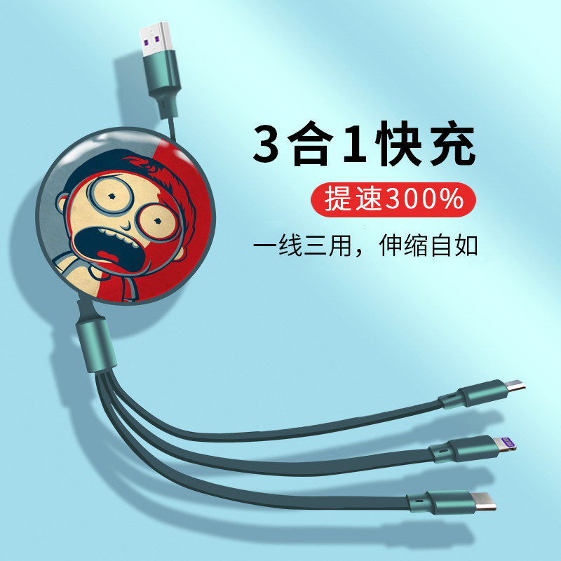 Apple, huawei, регулируемый мультяшный совместимый мобильный телефон, универсальное зарядное устройство, зарядный кабель, «три в одном», андроид