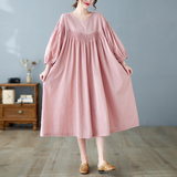 Осенняя юбка, платье, высокая талия, по фигуре, из хлопка и льна