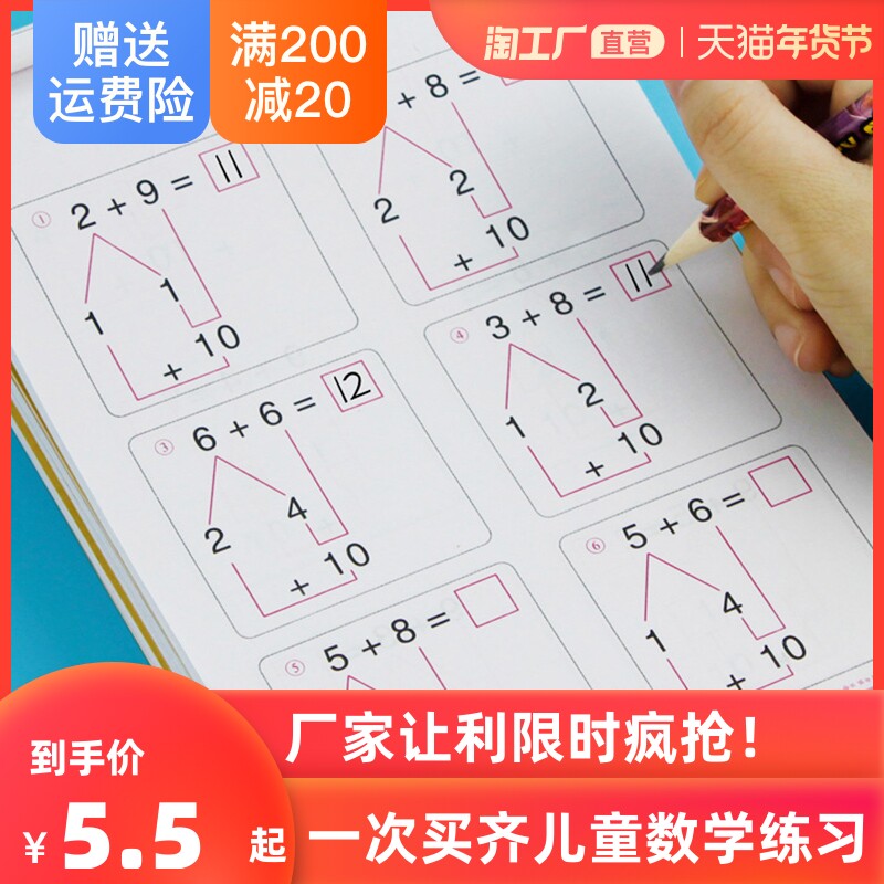 Карточки с вопросами для обучения математике для устного счета для детского сада, практика для тренировок для школьников для первого класса, упражнения, тетрадь