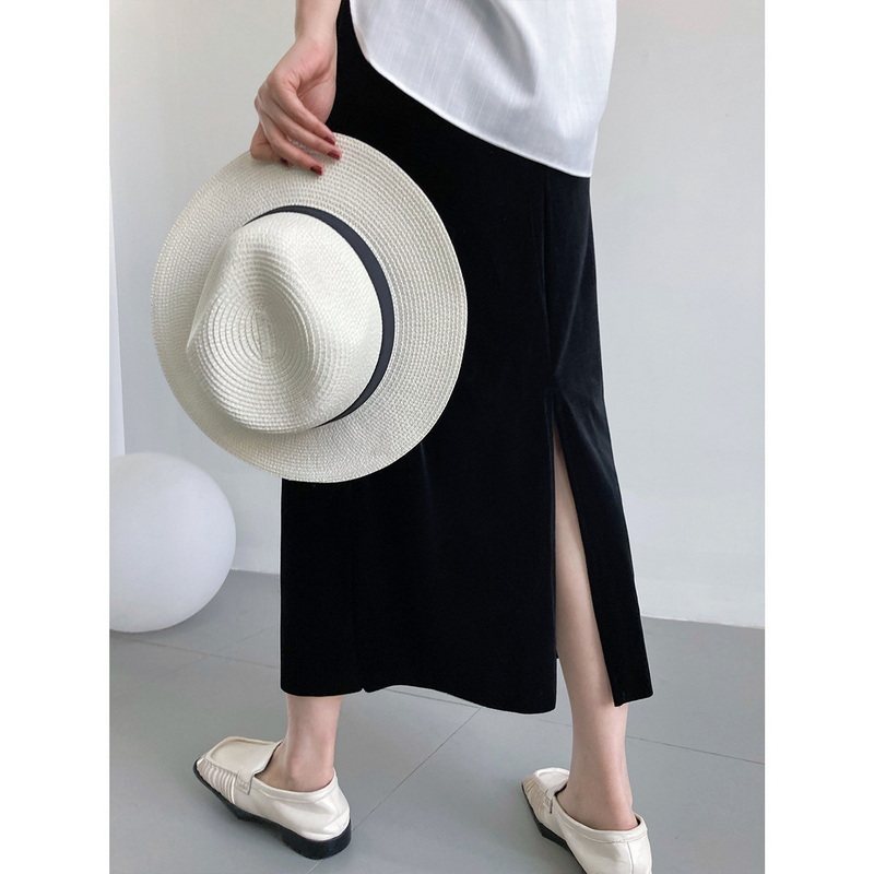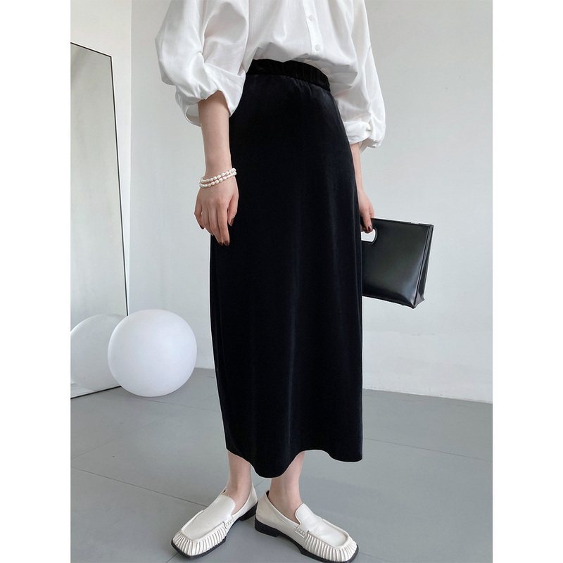 Бархатная элитная ретро длинная юбка, изысканный стиль, средней длины