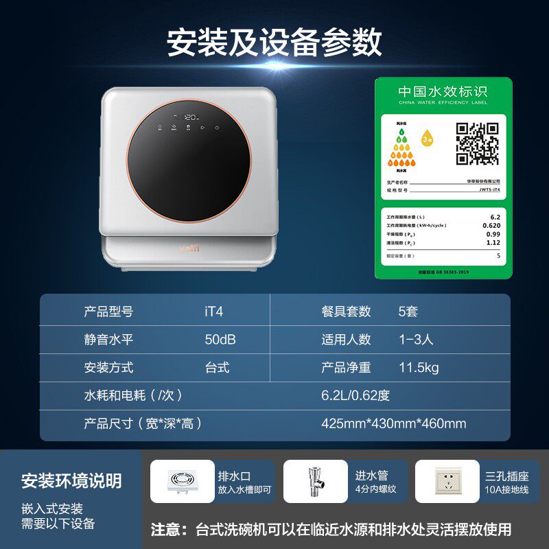 Vantage It4 Посудомоечная машина 5 комплектов настольной бесплатной установки дома Новая сушка ветра, дезинфекция стерилизации Полностью автоматическая флагманская подлинная