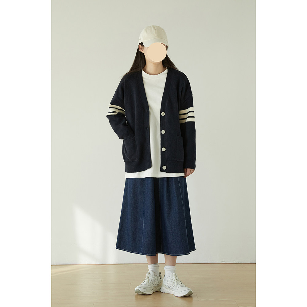 Весенний кардиган, японская школьная юбка, лонгслив, свитер, тренд сезона, V-образный вырез, 2023