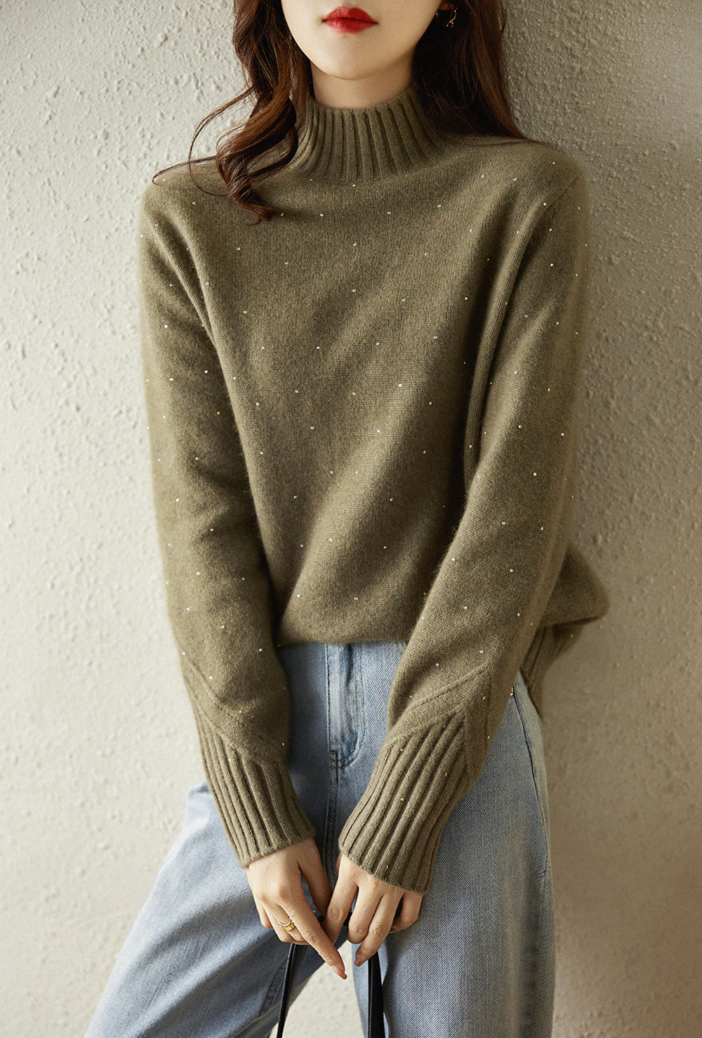 Добро пожаловать весна ПоловинаШерстяной свитер с высоким содержанием