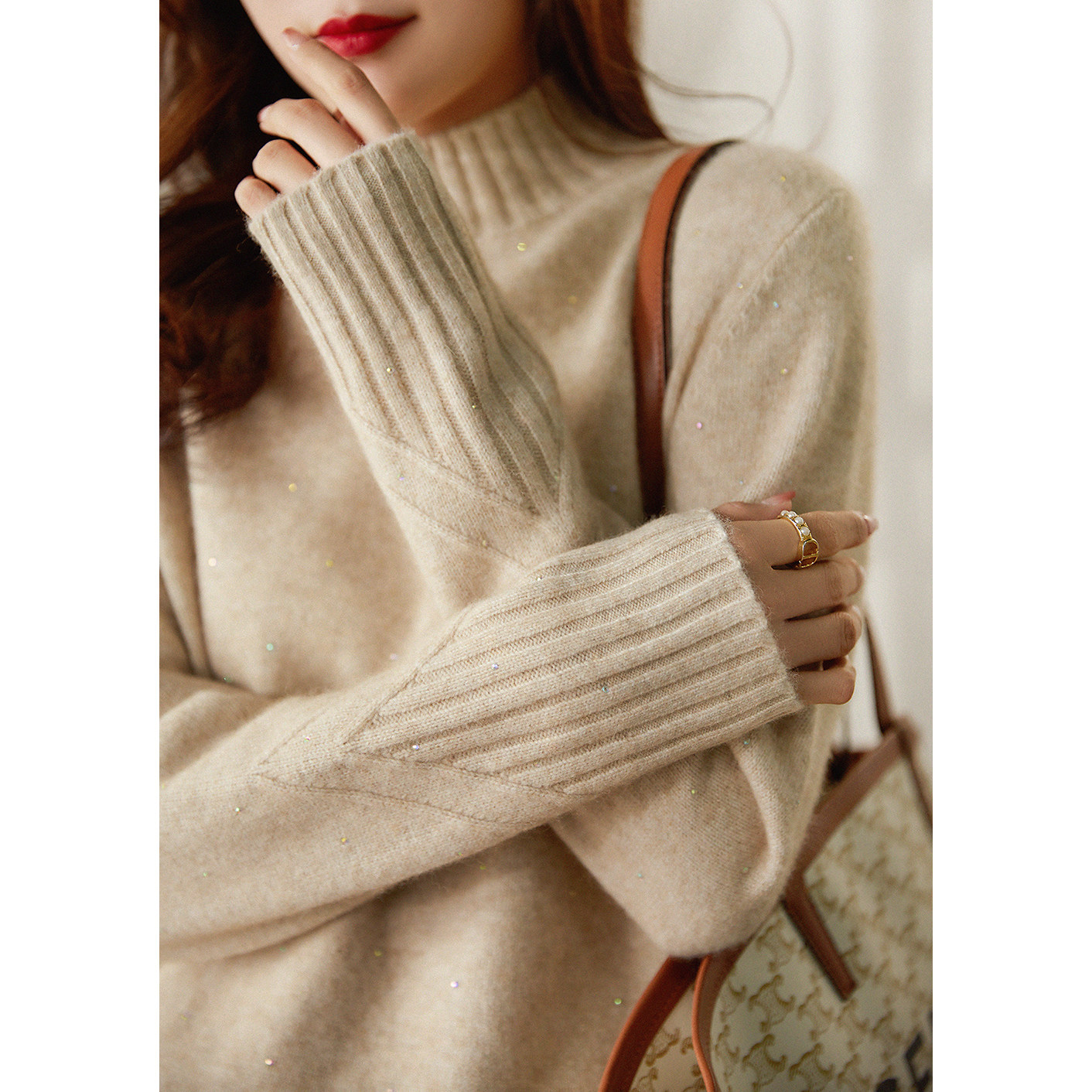 Атмосферный элегантный трехмерный шерстяной свитер, высокий воротник