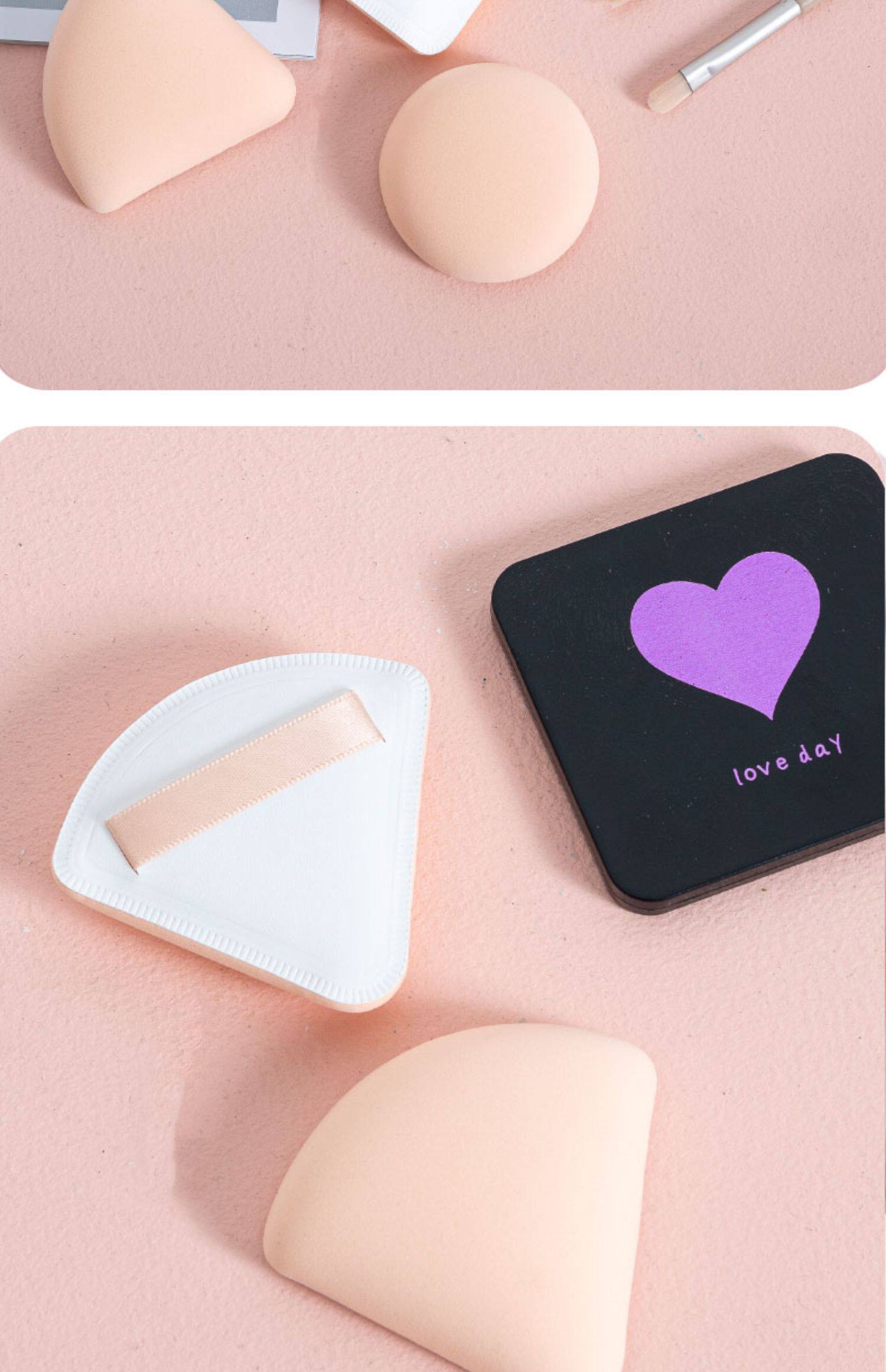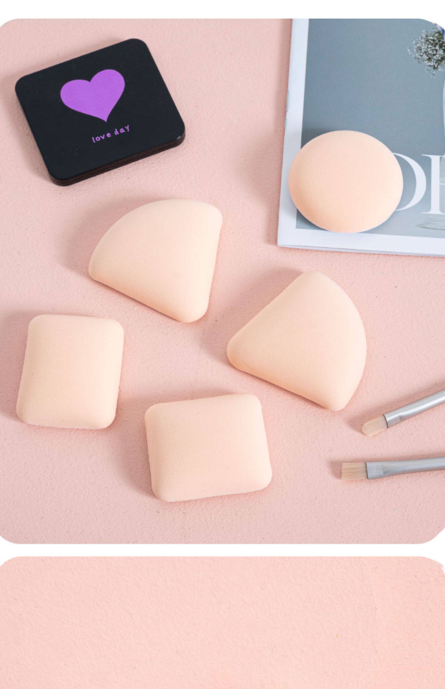 Хлопковый спонж, поролоновый кушон, пудра, тональный крем, косметическая губка