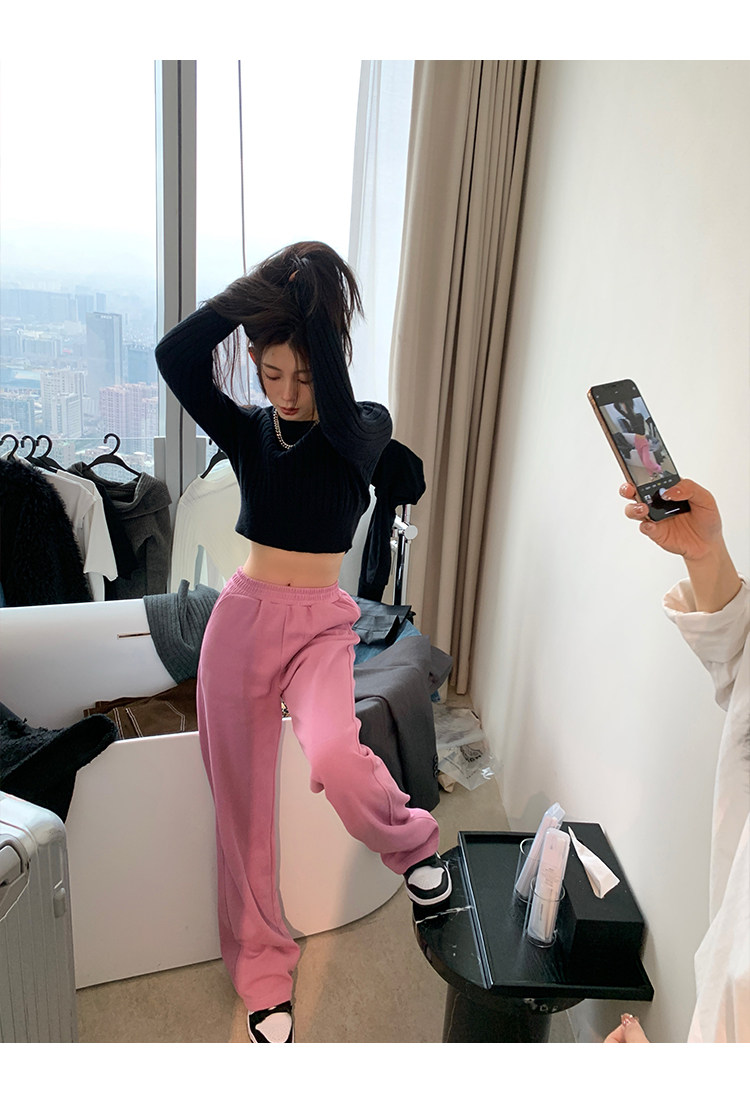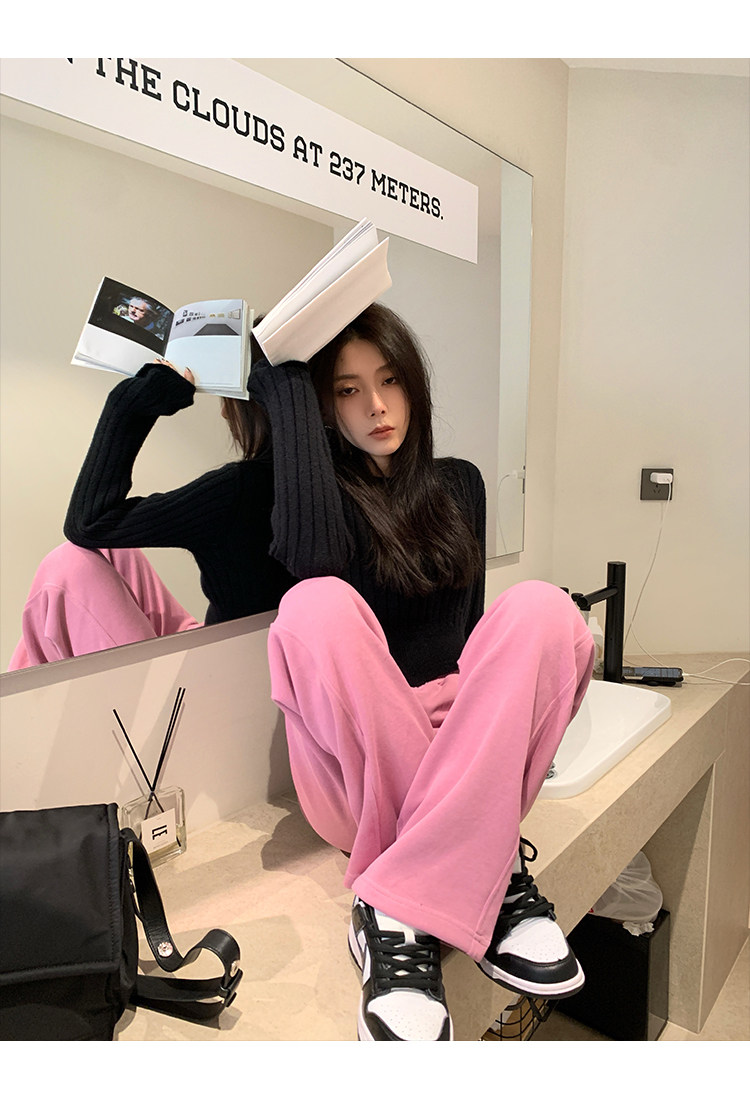 Розовые демисезонные штаны для отдыха, (в наличии на складе), высокая талия