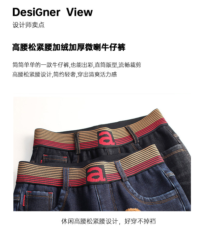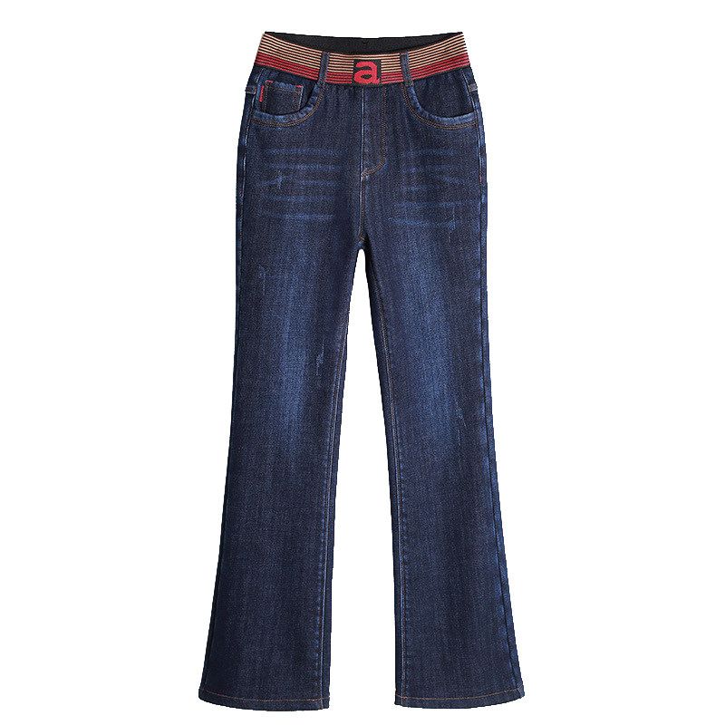 Джинсы, утепленные демисезонные штаны, высокая талия, размер, эластичная талия, свободный крой