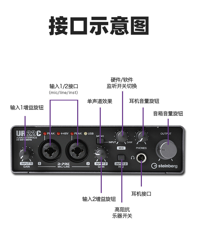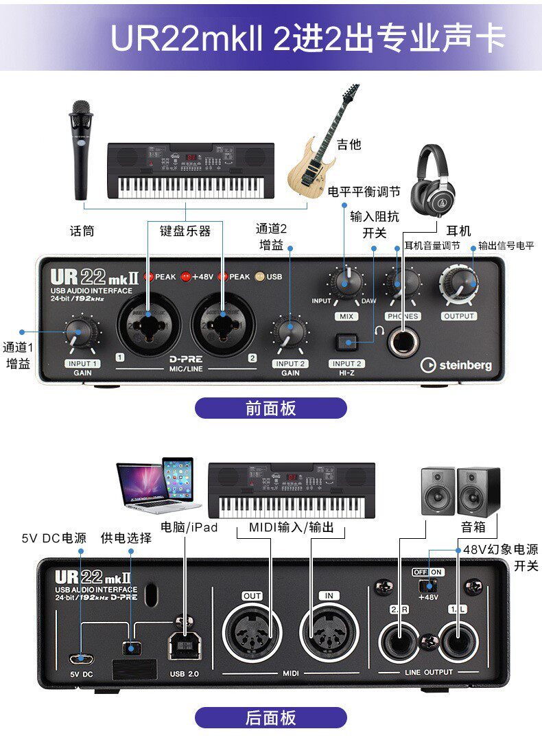 雅马哈 UR22MKII Установите UR22C Установить профессиональную запись внешней аудиозарной оборудование аудио -интерфейс