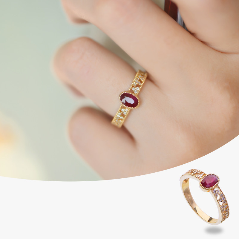 Натуральное рубиновое кольцо, бриллиантовая универсальная инкрустация камня, золото 18 карат, легкий роскошный стиль, подарок на день рождения